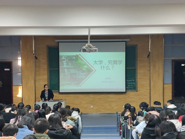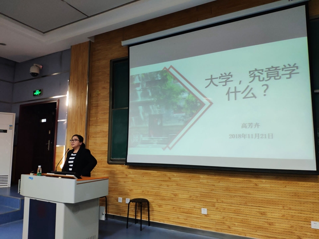 2018级本科生入校已经近三个月,为了让同学们时刻保持上进心态,正确了解自我,认识大学,保持端正的学习态度。11月21日下午16:30,太阳集团tyc4633分党委秘书、团委书记、2015级辅导员高芳卉老师,在5204教室为2018级本科新生开展第六次入学教育报告会,主题为:“大学,究竟学什么?”。