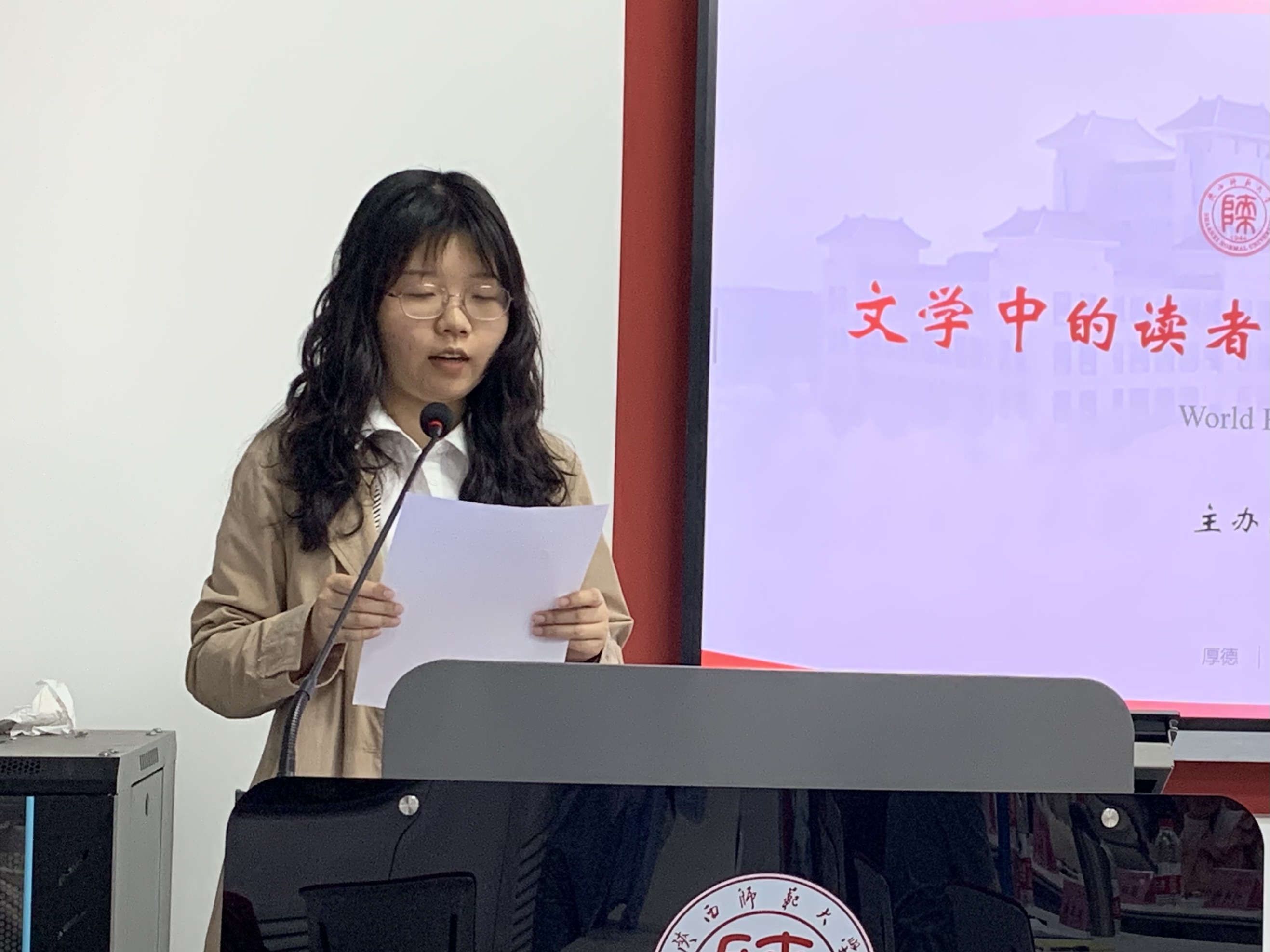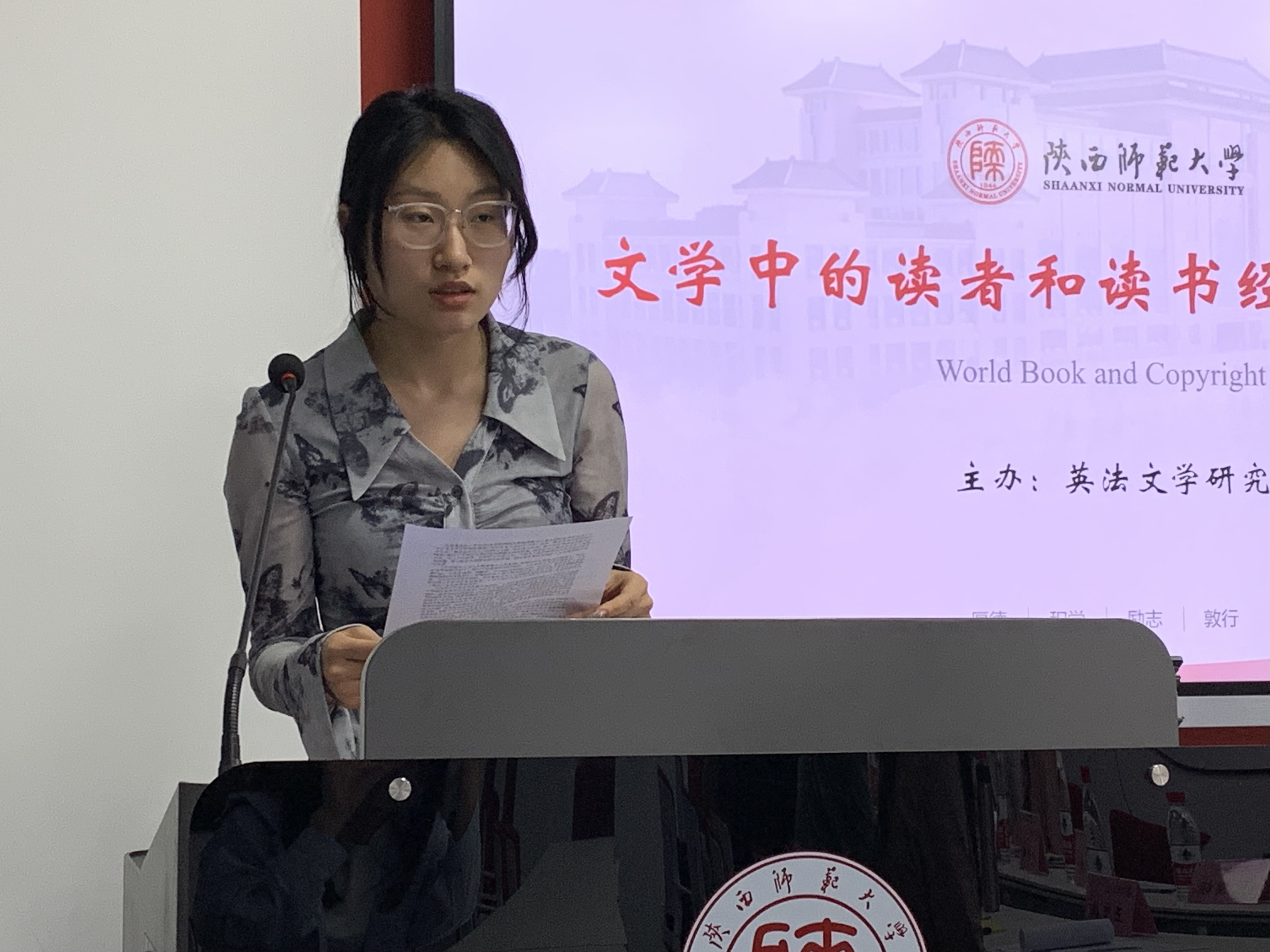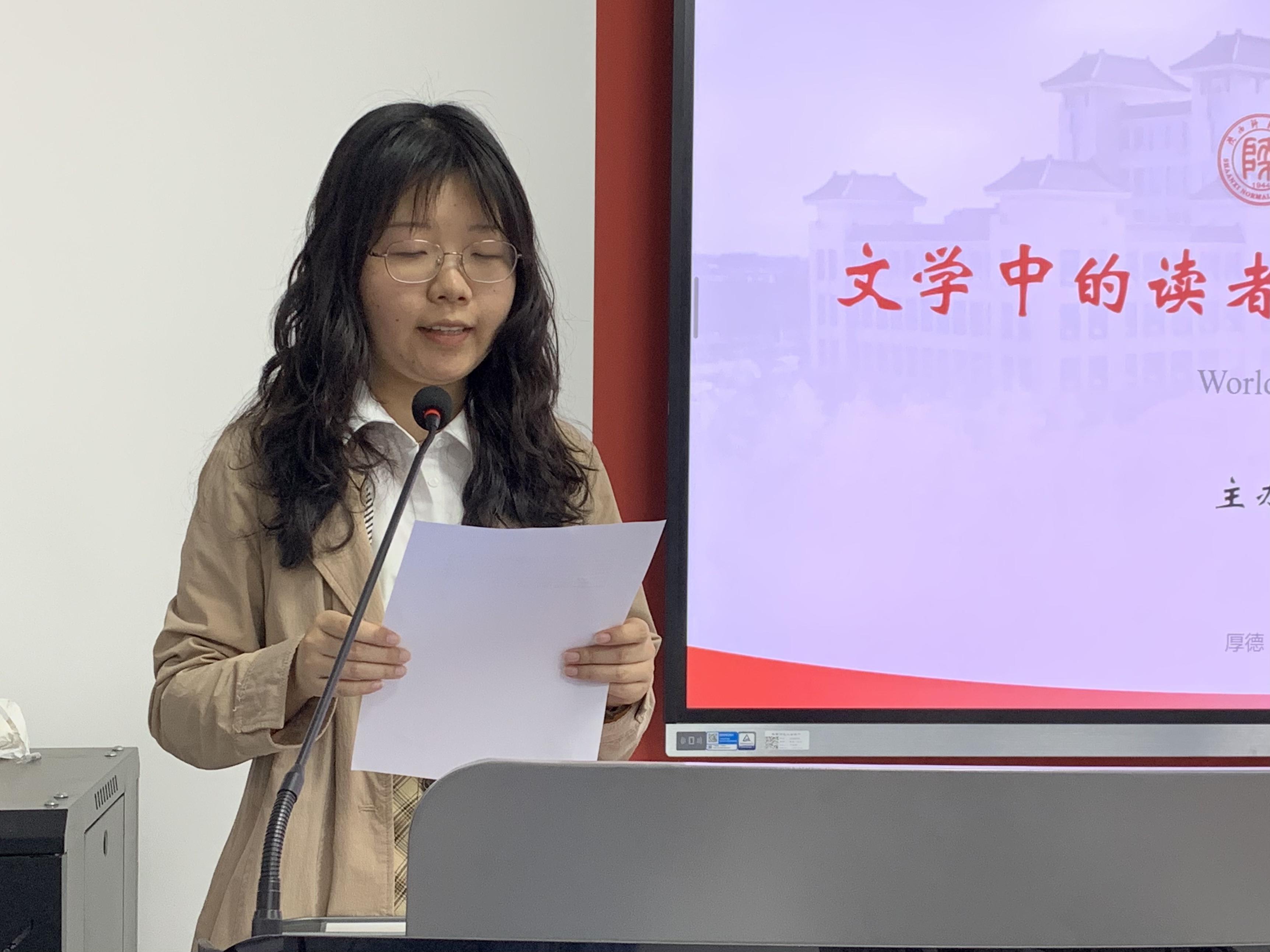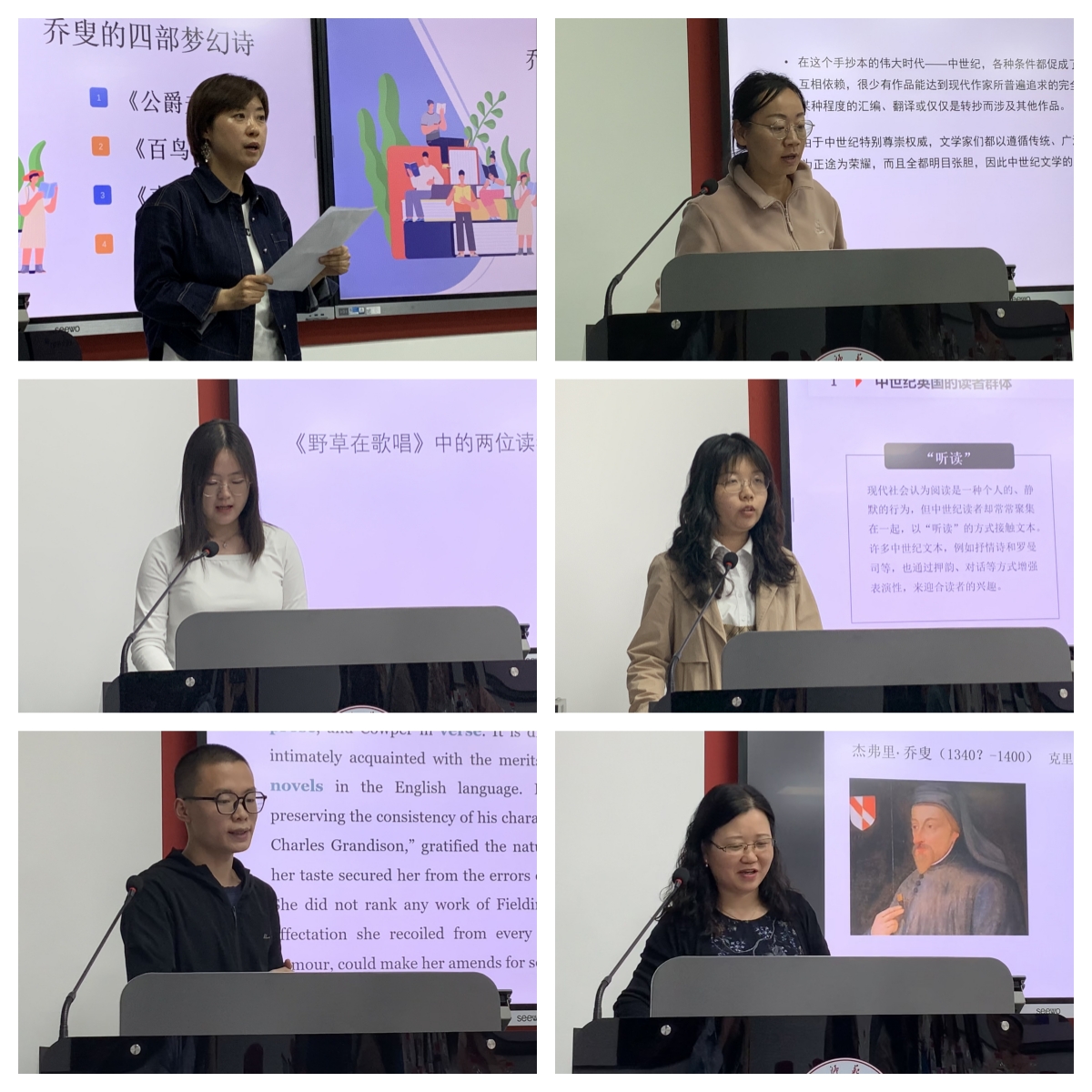 博士生惠菲菲指出,乔叟的四部梦幻诗中介绍了阅读的功用、阅读后的体验、阅读时的状态、对阅读的态度以及乔叟叙述者与读者的关系。博士生李莉指出,在中世纪各种条件都促成了文本的某种“互文性”或相互依赖。硕士生李林兰、博士生王梦鸽和本科生姚文骏分别讲述了《野草在歌唱》中作为读者的玛丽和迪克、中世纪英国文学中的“听读”现象以及《傲慢与偏见》中的阅读情节与旨趣。最后,张亚婷教授通过阐述乔叟和皮桑对阅读环境的描写,分析阅读环境设计和阅读行为发生的物质空间以及读者精神诉求。