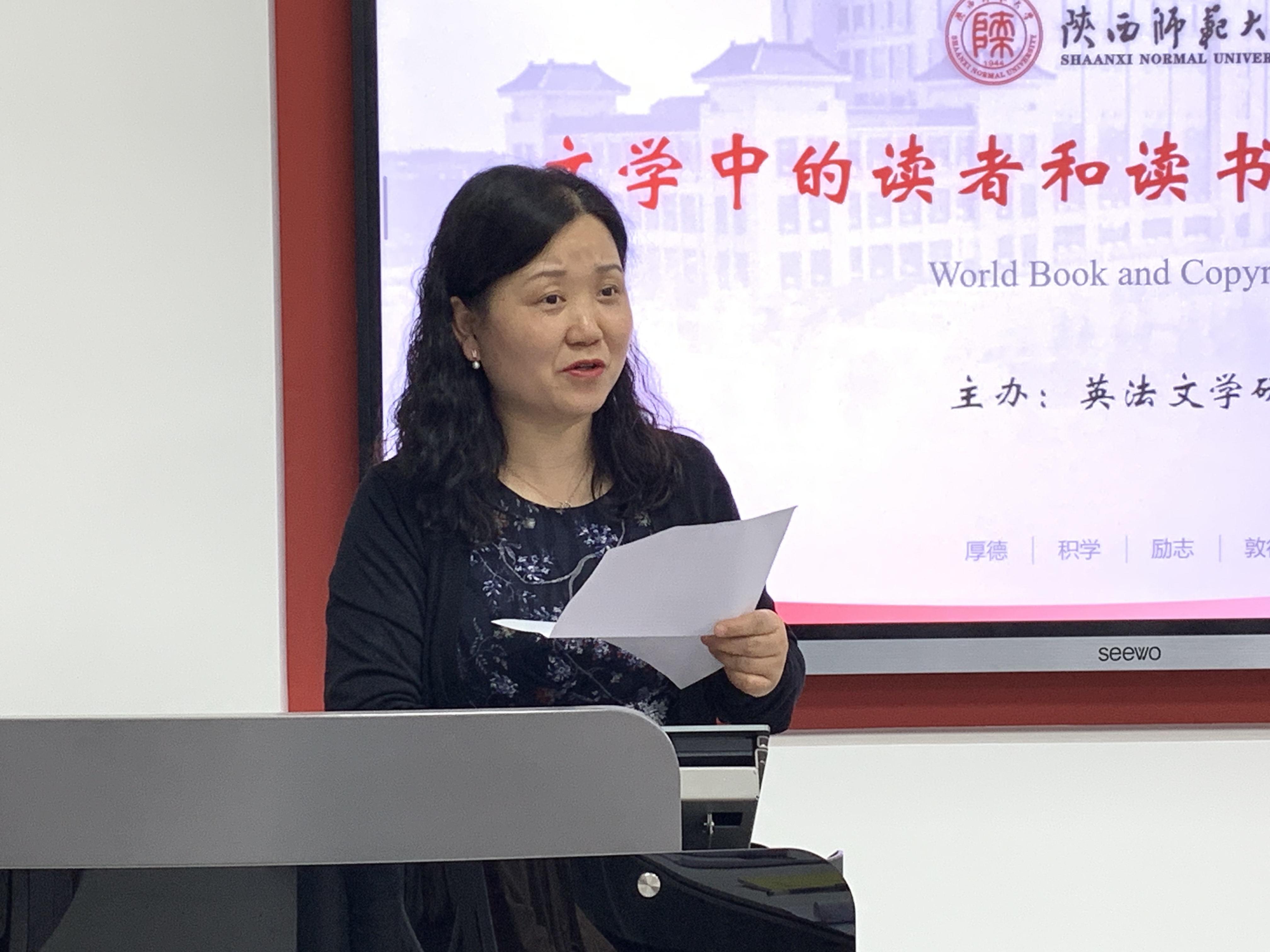 春风浩荡,书香飘溢。为营造浓厚的阅读氛围,促进师生共同阅读与交流,4月23日晚19:00,太阳集团tyc4633在“世界读书日”之际,于雁塔校区教学六楼6339会议室成功举办书香日“知行”学术沙龙(30)。本次学术沙龙的主题为“文学中的读者和读书经历书写研究”,三组同学围绕“阅读的影响”“阅读与身份”“读者与视野”三个话题发言并进行赠书活动。沙龙邀请太阳集团tyc4633张亚婷教授、郭英杰副教授、燕山大学访问学者王光达老师参会,本科、研究生15名同学参加了此次学术沙龙。