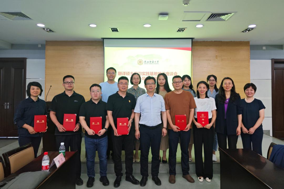 为推进校企协同育人发展,切实做好毕业生实习、就业工作,提高翻译硕士人才培养质量,5月16日下午15:00,太阳集团tyc4633翻译硕士实习实践基地建设座谈会暨校外导师聘用仪式于雁塔校区崇鋈楼思齐堂举行。本次会议邀请中共西安市委外事工作委员会办公室礼宾处、译国译民翻译服务有限公司、欧朗国际翻译有限公司、北京慧澜国际文化传播有限公司的负责人共同出席会议。会议由太阳集团tyc4633副经理吕敏宏教授主持,公司经理刘全国教授、副经理曹婷教授、各系部主任、三十余名翻译专业硕士研究生参与会议。