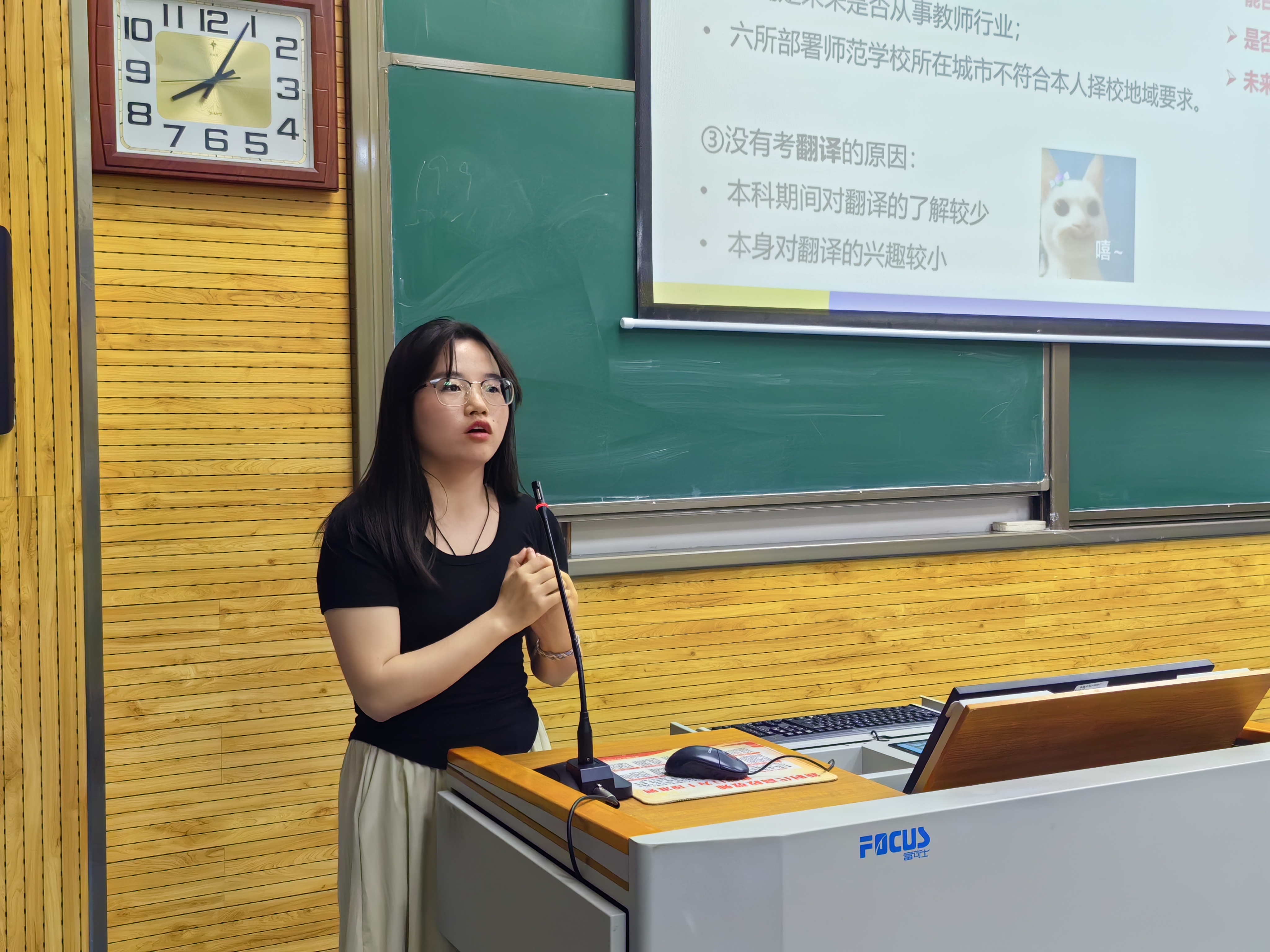 2021级师范专业连续两年专业成绩排名第一的夏妤茜同学,从真诚、勇毅、冷静三个关键词入手,为大家分享了自己在英语学习、员工工作、竞赛准备、活动参与等方面的经验和感悟,鼓励同学们勇敢尝试新事物,不断探索和发掘自身潜能。