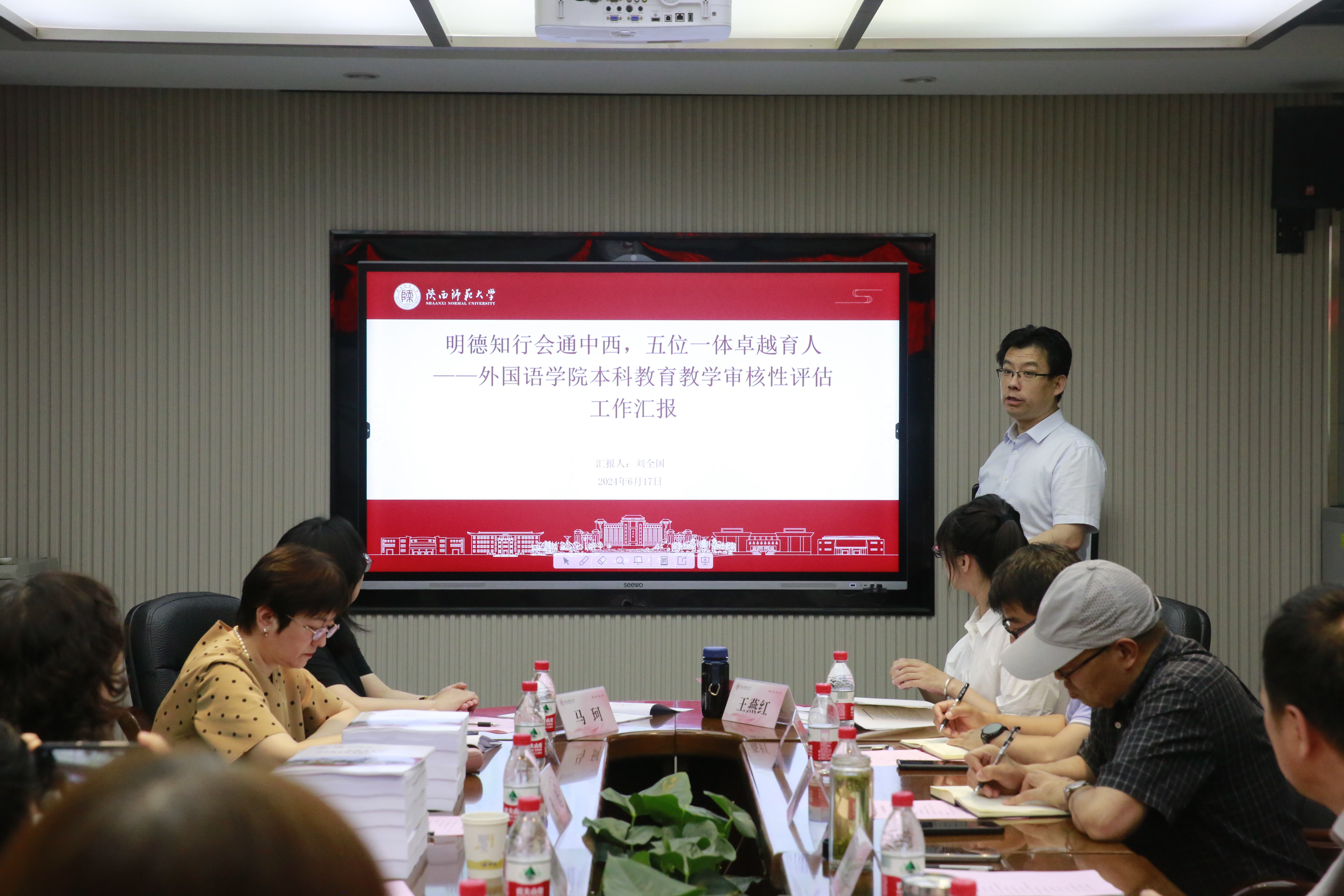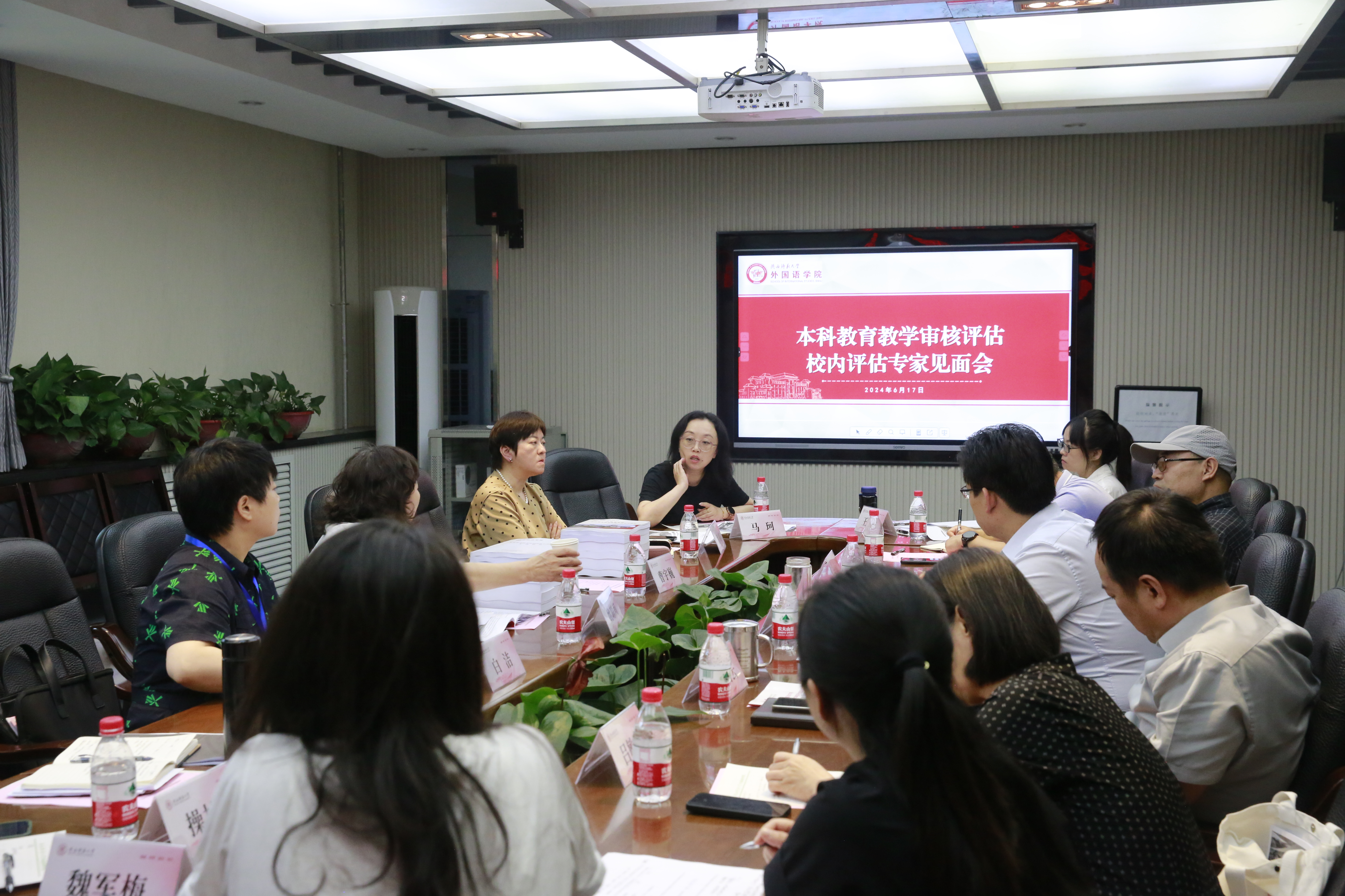 6月17日下午14:00,太阳集团tyc4633在雁塔校区教学六楼会议室召开本科公司产品审核评估校内评估专家见面会。本次会议由评估专家姚聪莉教授主持,参会成员有:教务处曹宇巍副处长、专家联络员白洁、公司经理刘全国、党委书记董增云、教学副经理孙坚、党委副书记鲁燕、研究生副经理吕敏宏、科研副经理兼日语系主任曹婷、行政副经理王幸生、督导委员会主任魏军梅、俄语系主任孟霞、公共外语教学与研究部主任马珂、英语系主任杨冬敏、翻译系主任操林英、法语系主任王燕红、团委书记李丹、办公室主任王莉、语言智慧教学中心主任邢俊升、公共外语教学秘书王维隽和本科专业教学秘书高红英。