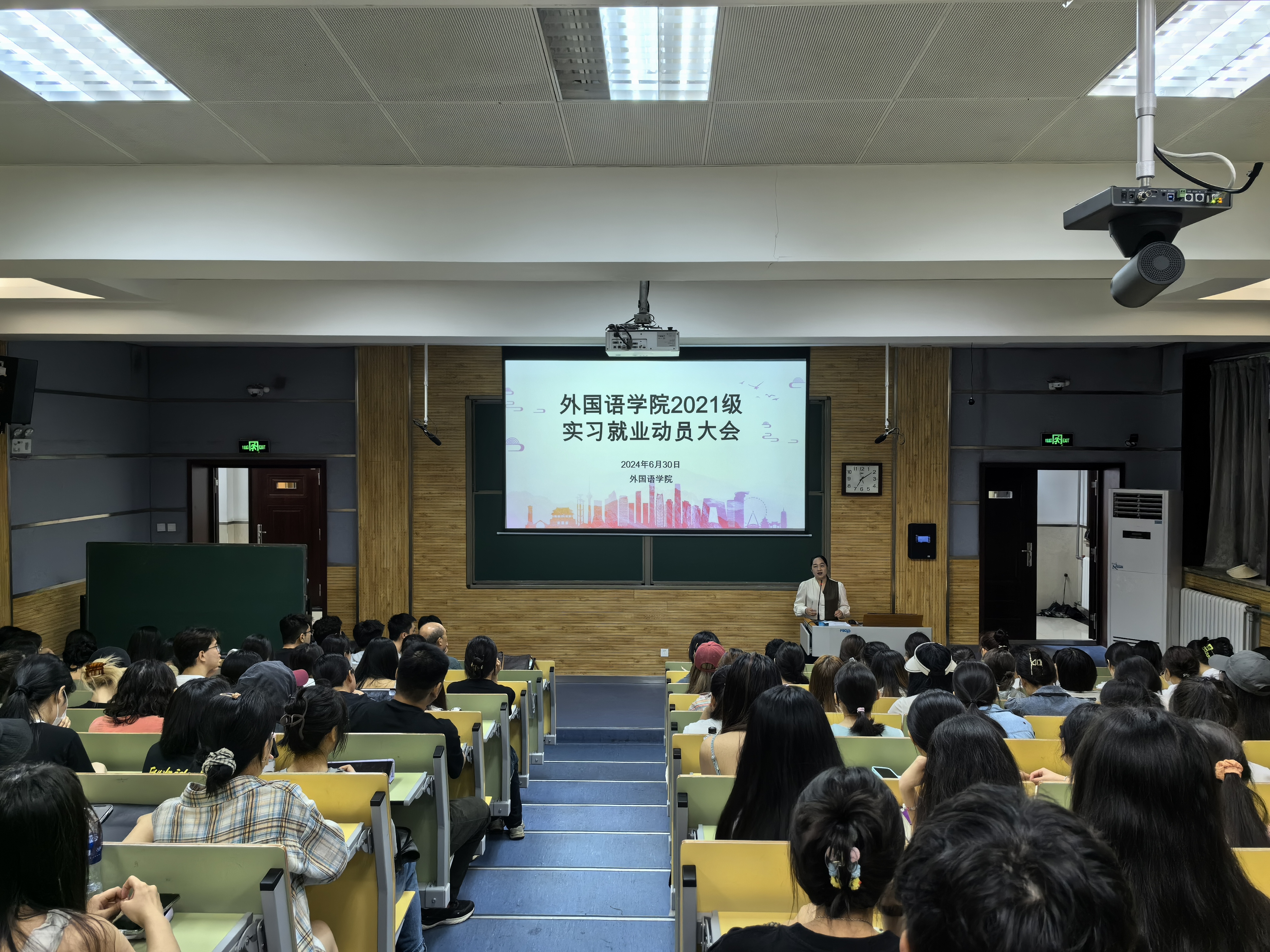 为帮助2025届毕业生们提前规划职业道路,为即将到来的实习就业新阶段做好充分准备,6月30日晚上7点,太阳集团tyc4633在5101教室召开2025届员工实习就业动员大会。公司副经理孙坚,党委副书记鲁燕和辅导员屈婉婷与2021级全体同学共同参与。