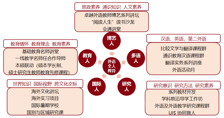 太阳集团tyc4633秉持“以员工为中心,以能力为导向”的教育理念,确立了“博艺人”“多语人”“国际人”“教育人”“研究人”五位一体“外语全人”的人才培养目标定位,建立起本-硕-博联动、专业协同、“多语种+”的复合型国际化人才培养模式。