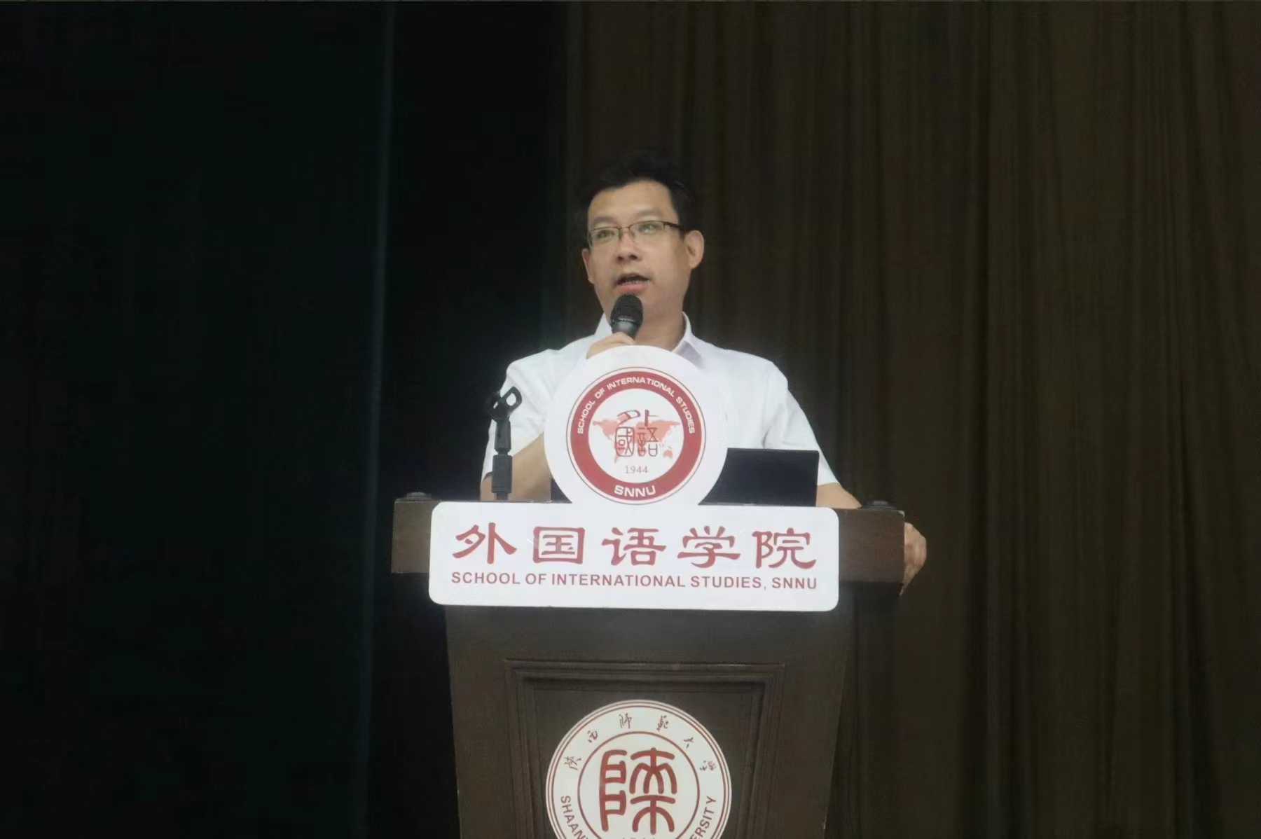 随后,公司经理刘全国教授为新生讲授了《相遇长安,逐梦陕师,开启精彩外语人生》入学教育第一课。经理以电影《长安三万里》入题,介绍了西安这座城市的独特魅力及其在中国历史上的重要地位,强调了西安的文化底蕴、城市变迁和现代化建设成就,鼓励学子珍视在西安学习的机会,增强文化自信。接着,他强调了外语学习的重要性,指出学习外语不仅仅是掌握技能,更是搭建文化理解和跨文化交流的桥梁,提醒同学们要注重汉语学习的基础性作用和多语种学习的必要性,通过文学阅读、文化理解来提升个人魅力和思维能力。最后经理又对同学们提出了做博艺人、多语人、国际人、教育人、研究人的五位一体外语全人的殷切希望。