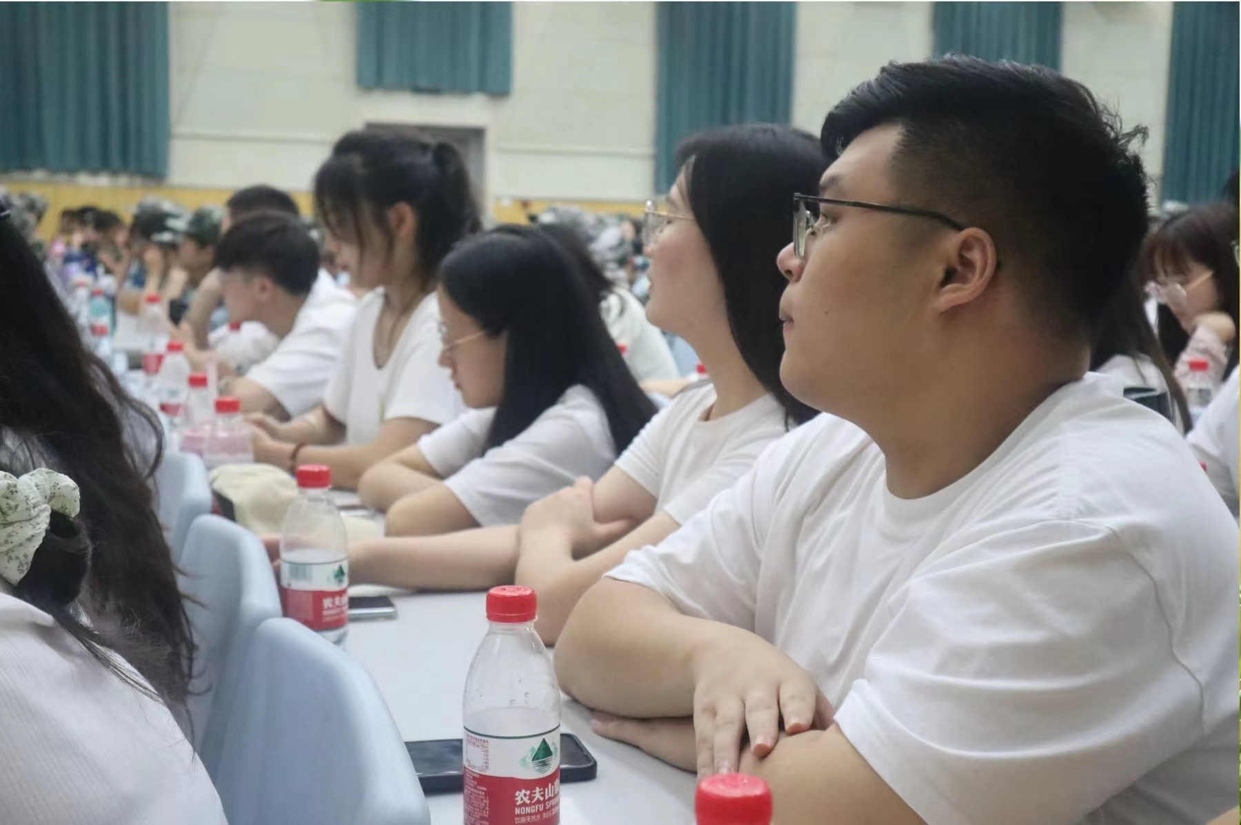 本科生在校生代表2022级优师班陈俊喆发言。他分享了自己在学术探索和个人成长道路上所经历的点点滴滴,鼓励每一位新同学都能够勇敢地面对未来的挑战,把握住老员工活中的每一次机会,无论是课堂上的学习还是课外活动的参与,都应当全力以赴,积极进取。