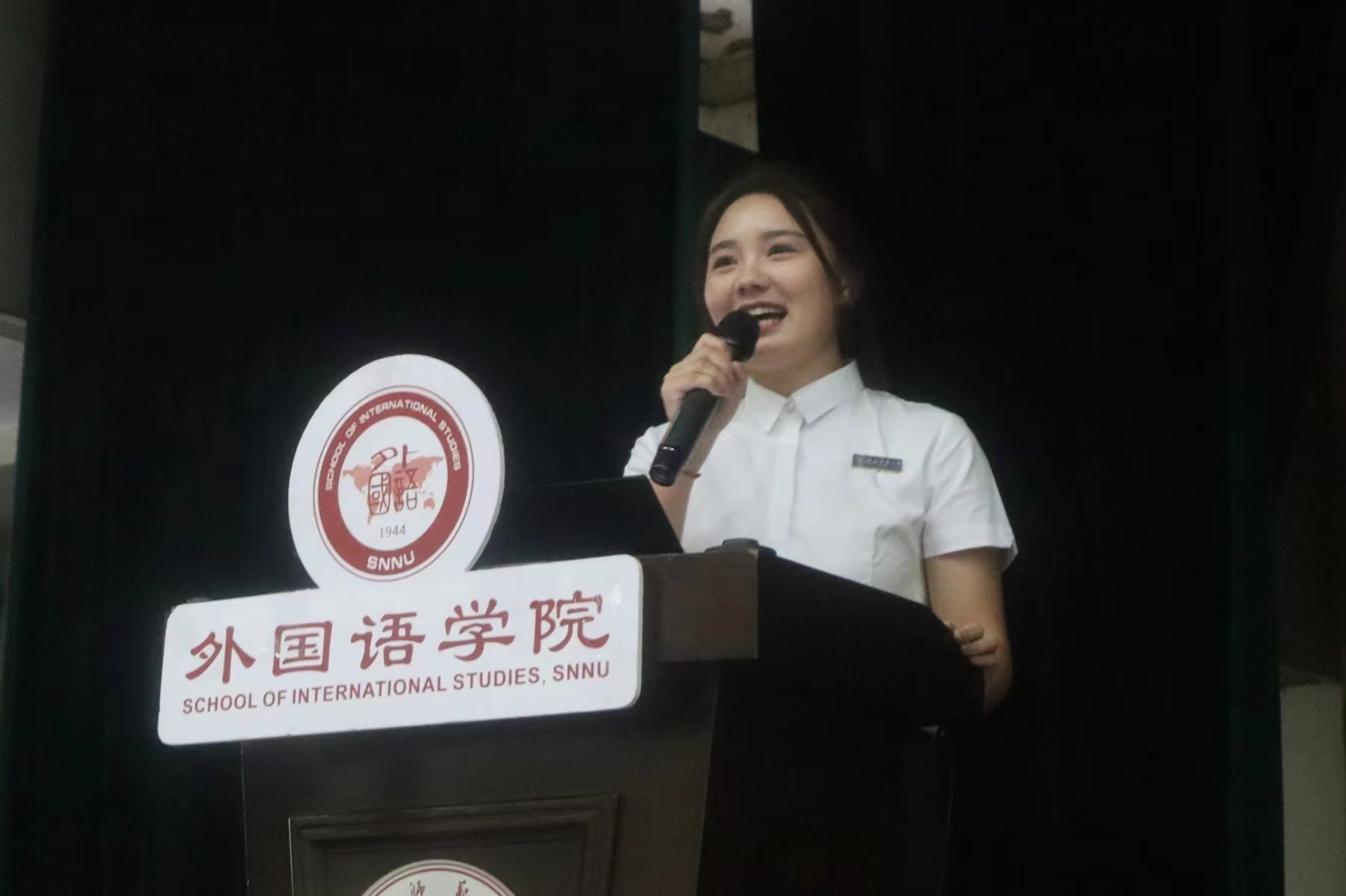 员工代表2017届毕业生师大附中英语学科组长陈午午回顾了自己在大学期间的成长,深情地讲述了自己从一名满怀梦想的创业者成长为一名传道授业解惑的教师的心路历程。他鼓励在座的每一位同学要珍惜宝贵的大学时光,积极参与各类活动,勇于尝试新鲜事物,从中发现自我价值,明确人生方向,在大学中尽情展现自我,把握机会,为实现个人的理想而不懈奋斗。