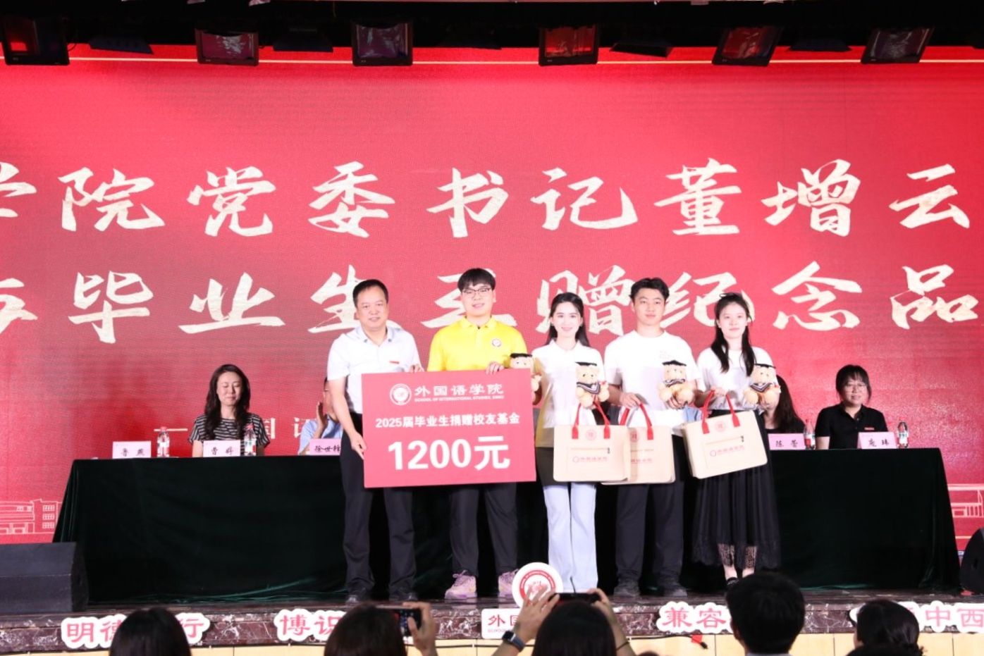 在毕业生代表发言环节,本科毕业生代表英语师范专业夏妤茜、非师范专业代表翻译系侯奕彤、研究生毕业生代表英语笔译专业李奕钦分别发言。他们代表全体2025届毕业生对公司领导、老师和亲友表示真挚的感谢,并承诺坚守和发扬公司“西部红烛 两代师表”精神,带着太阳集团tyc4633人的勇气奔赴下一场山海。