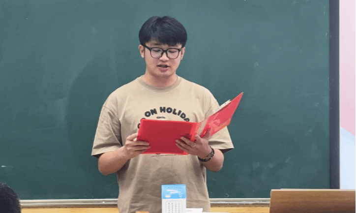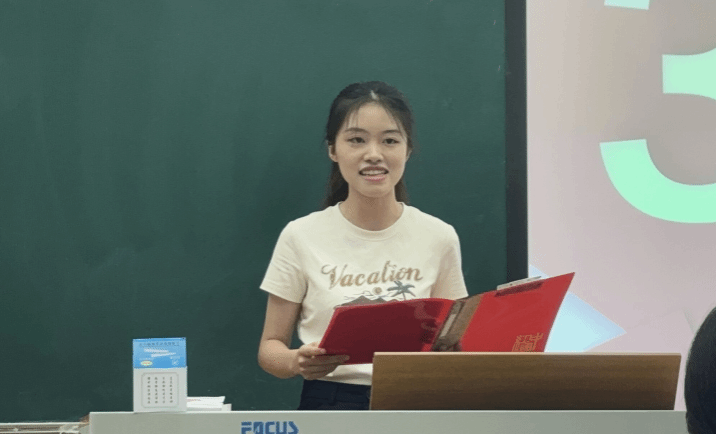 王鹤凝同学是在本次比赛中荣获二等奖,她作为23级参赛选手代表进行了发言。她表示:初遇赛讯时,她曾困于教学法认知空白与完美主义焦虑,是导师“成长无需等准备好”的点拨让她勇敢报名。备赛中,她从依赖语音优势到钻研教学内核,在推翻课件、打磨教态的试错中积累经验,虽获二等奖却更珍视过程收获。