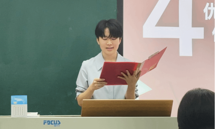 陈俊喆同学作为公司员工会主席团成员,在本次比赛中积极组织筹备。在表彰会上,他作为工作人员代表进行了发言。他复盘了员工会学习部与其他志愿者、工作人员在本次比赛中的工作,总结了实践经验,并对今后员工会在促进师范生技能训练方面的工作做出了展望。
