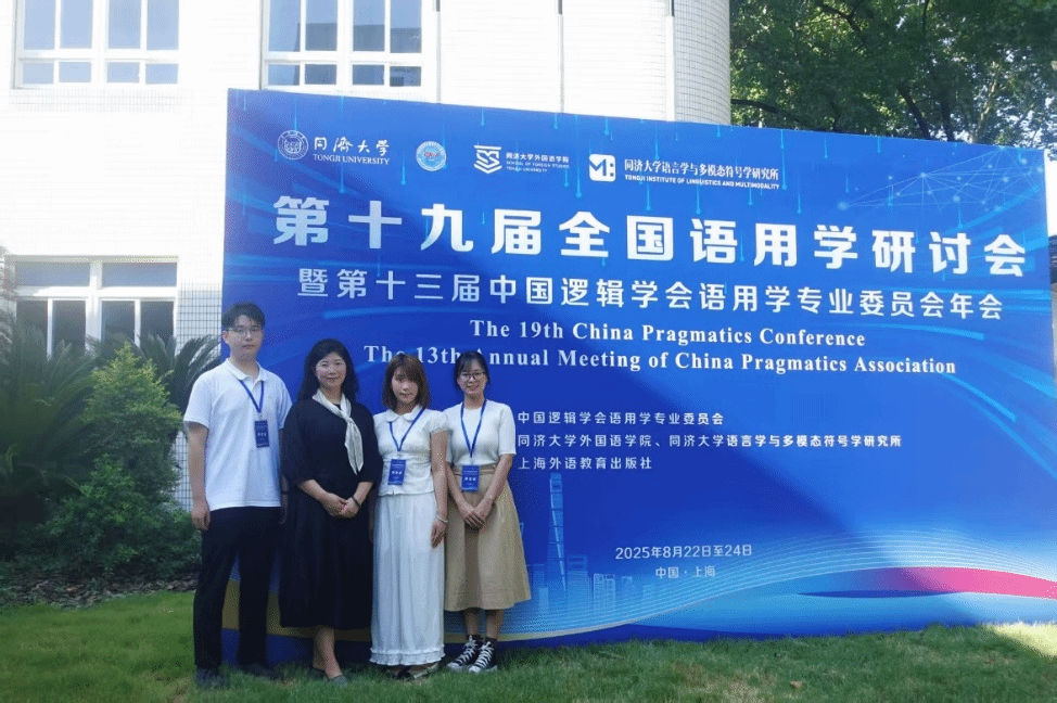 2025年8月22—24日,第十九届全国语用学研讨会暨第十三届中国逻辑学会语用学专业委员会年会于同济大学成功召开。大会以“面向社会变化的语用学创新研究”为主题,汇聚语用学及相关交叉学科400余位专家学者。公司朱冬怡副教授带领2024级硕士生崔云晗、张世瑾、宋泽辰一行四人赴沪参会,共襄学术盛举。