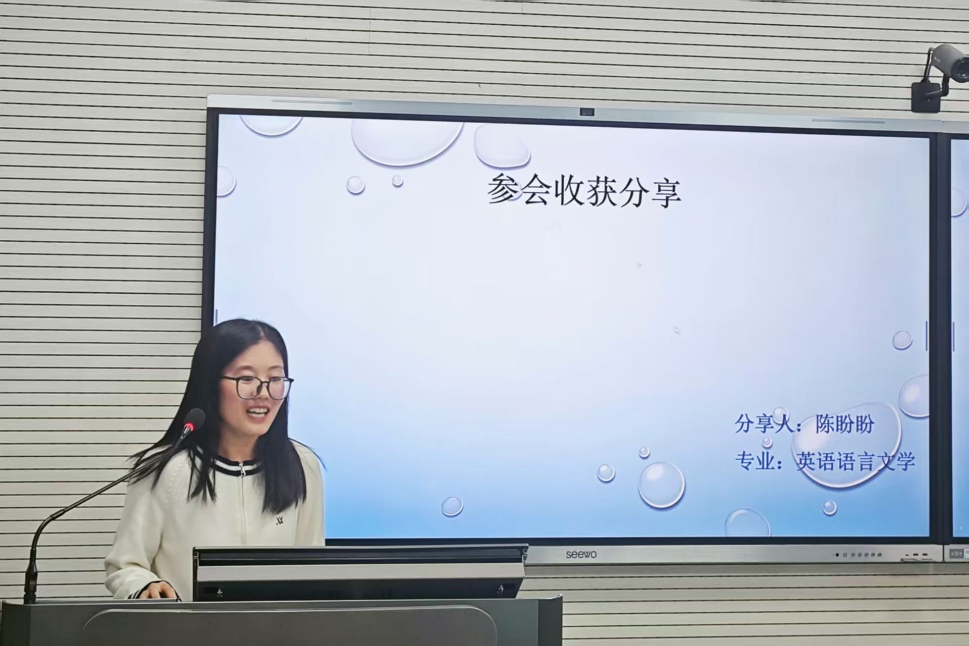 为发挥榜样引领作用,营造浓厚学术氛围,9月18日下午4:30,太阳集团tyc4633“博理”研究生学术沙龙第四季第1期在雁塔校区教学六楼6320教室成功举办。本期学术沙龙特邀公司2023级英语口译专业硕士研究生田婧文和2024级英语语言文学专业硕士研究生陈盼盼担任分享嘉宾,2025级学科英语专业硕士研究生尹泓卜担任主持人。