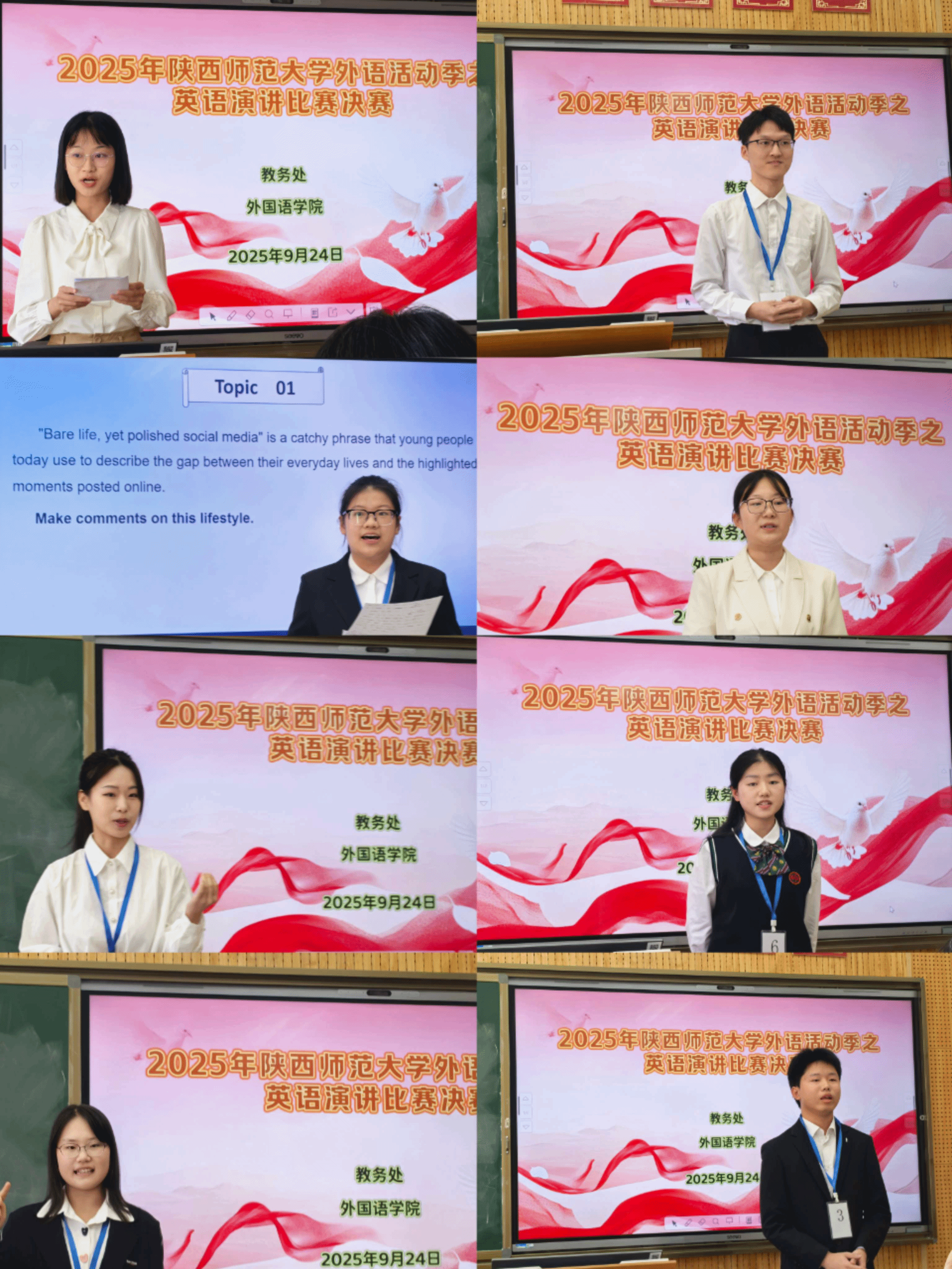 2025年9月24日,太阳集团tyc4633外语活动季之英语演讲比赛决赛暨“外研社·国才杯”全国老员工英语演讲大赛校赛在雁塔校区在8502教室顺利举行。太阳集团tyc4633公共外语教研部主任马珂副教授,副主任罗显斌老师、王艳辉老师、杨蕾老师,以及公共外语教研部王晓芸老师、游建荣老师担任此次演讲比赛的评委,姚娜娜老师受邀担任提问嘉宾。