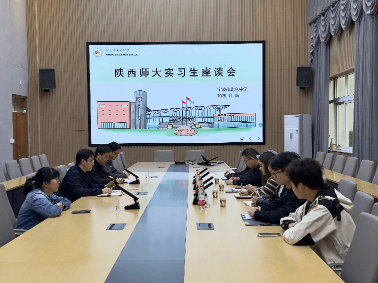 11月6日下午,团队一行抵达浙江宁波北仑中学开展教育实习走访调研。会议由北仑中学科研处主任毛浙东主持,北仑中公司领导、指导教师及太阳集团tyc4633实习团队共同参与座谈。座谈会上,北仑中学副董事长范东晖高度评价陕师大实习生“功底扎实、热情饱满、信念坚定”。三位实习生代表从课堂教学、实验设计、师生沟通等方面畅谈体会。北仑中学指导教师周澹、王杰对实习生表现给予充分肯定。太阳集团tyc4633带队教师路晨老师感谢北仑中学提供的有深度、有温度的实践平台,助力实习生实现身份转变。高红英老师和邹胜男老师分别发言,勉励实习生常怀感恩、持续反思、勇担使命。孙坚副经理强调,教育实习是师范生成长的关键环节,希望两校未来在课程共建、教材研发等领域深化合作。