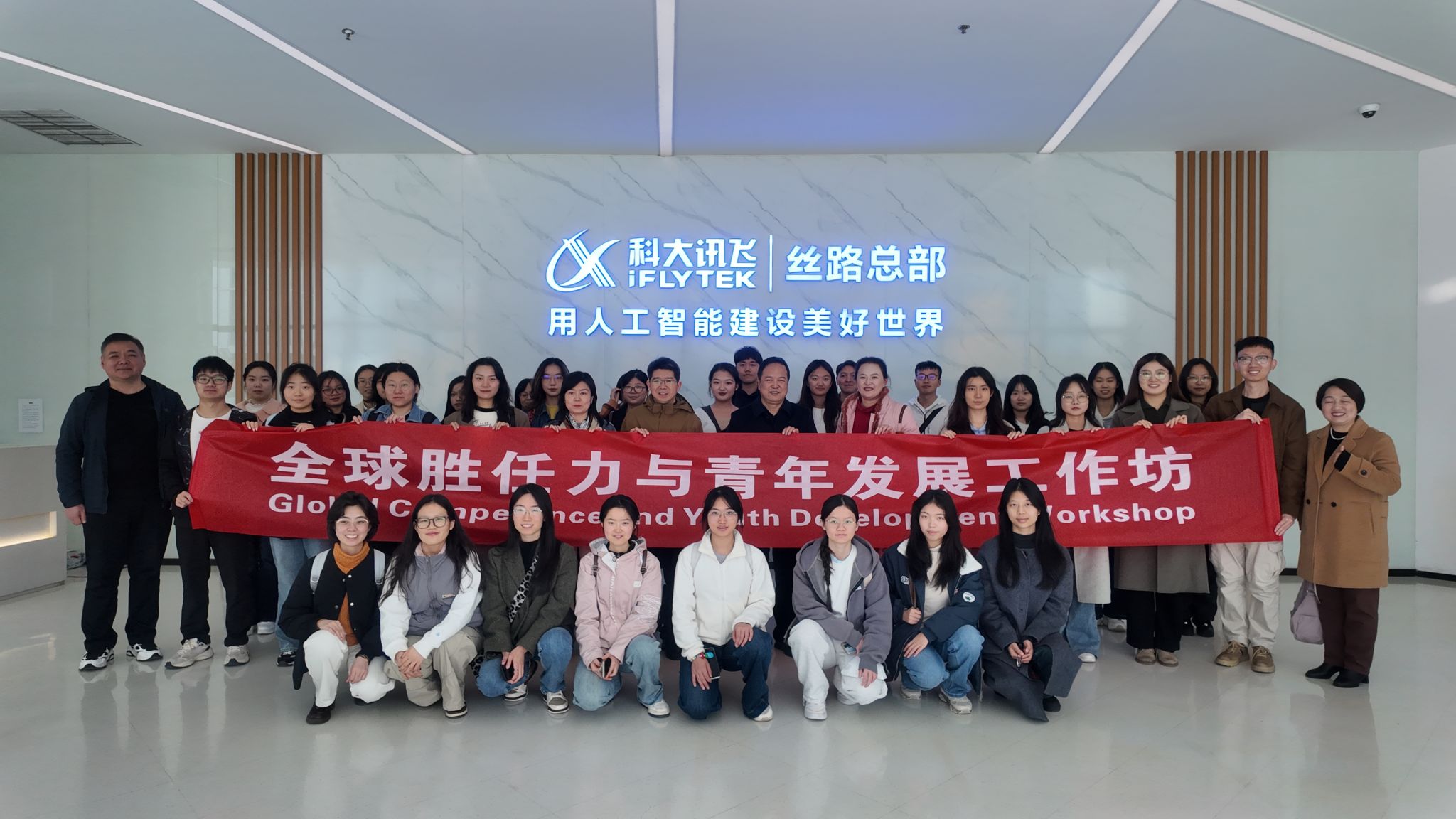 在科大讯飞丝路总部,工作人员详细介绍了企业发展历程并向师生们展示了最前沿的应用技术。基于人工智能核心技术,科大讯飞持续赋能教育、医疗、金融、汽车、城市、运营商、工业等行业赛道并取得广泛成效。在教育技术展示设备前,同学们了解到,科大讯飞为全国32个省级行政区、5万余所公司、1.3亿师生提供智慧教育产品和解决方案,以人工智能助力因材施教,师生们亲身试用设备,直观感受科技与教育的变革。公司党委书记董增云、副书记鲁燕、英语系主任杨冬敏等与科大讯飞相关负责人就外国语人才培养、课程改革、实习实践等方面进行了交流。