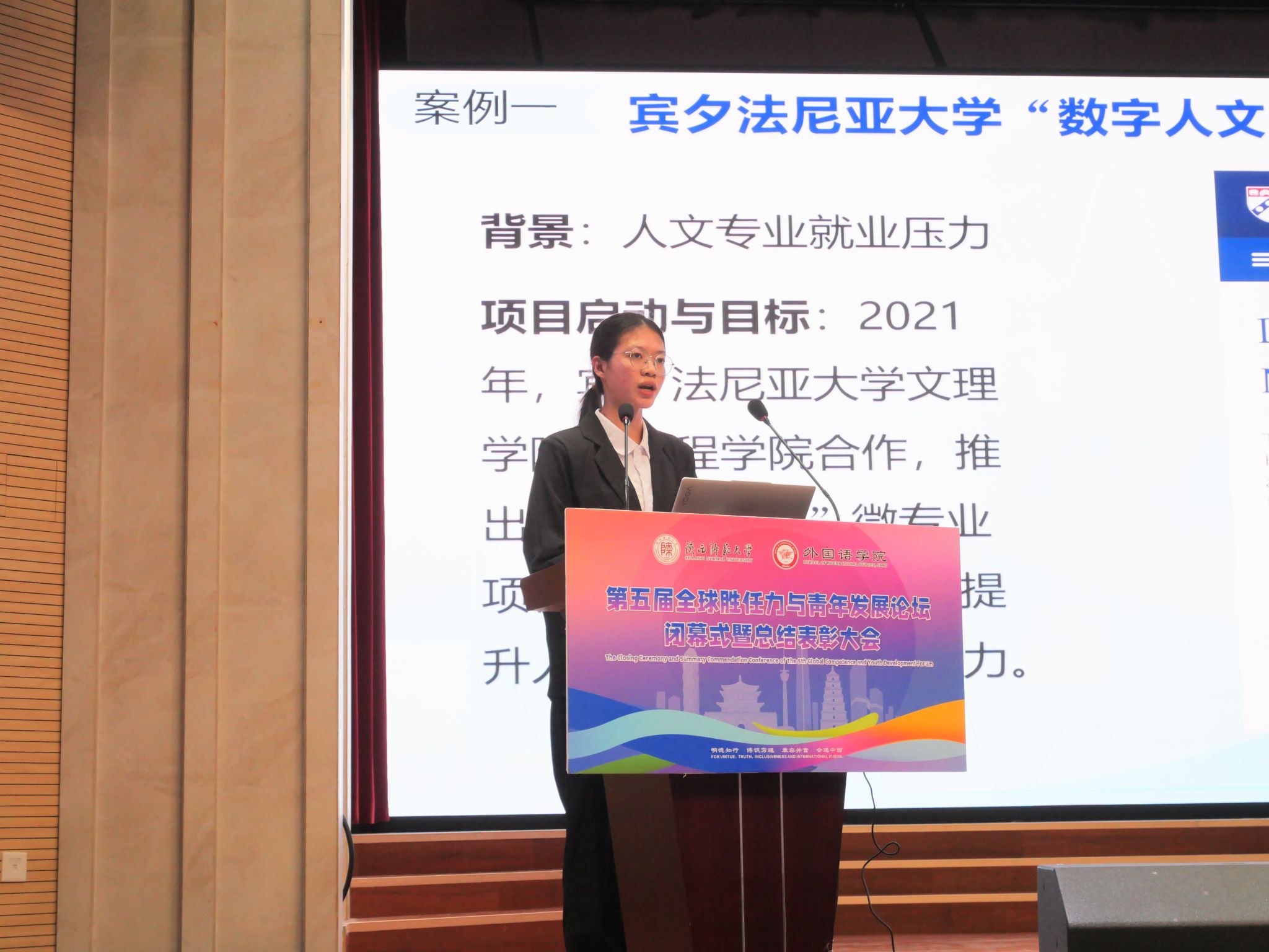 公司党委副书记鲁燕就第五届论坛的开展情况进行汇报。她回顾了论坛自2020年举办以来五届的发展历程,并重点介绍了本届论坛在国际理解专题讲座、全球热点议题研讨、国际基础教育主题海报展评、知名企业参访等方面的情况,对公司形成的“高校青年全球胜任力‘1+4+X’创新培育模式”进行了解读,宣读了工作坊优秀学员名单。
