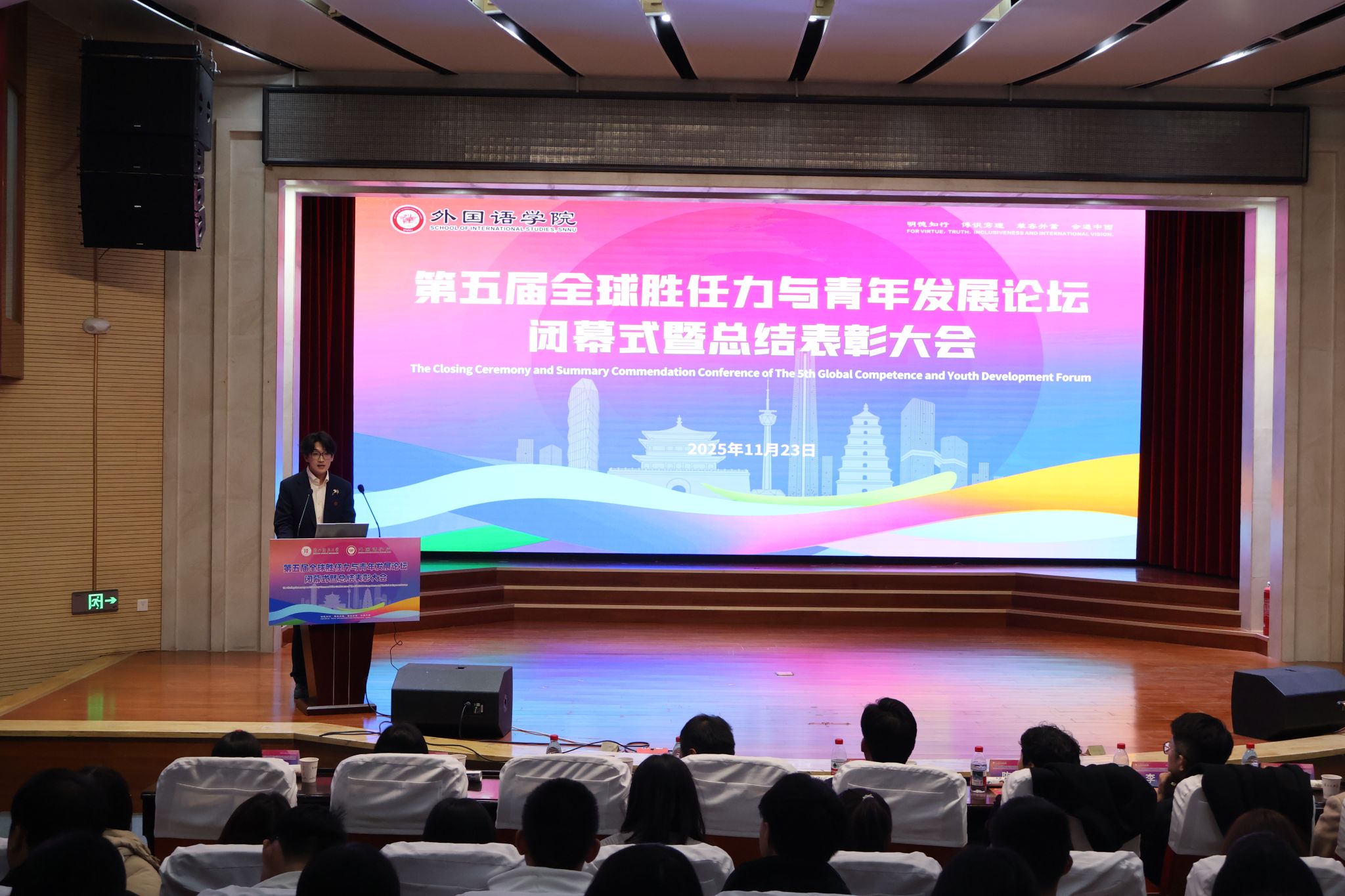 公司经理刘全国教授作总结发言。他回顾了全球胜任力论坛五届以来的历程,对论坛的成长发展和学工团队的创新推进给予高度评价。刘经理从论坛增容提质、推动跨学科深度参与,优化形式、增强覆盖面,创新方式、引入多语种展示等方面提出了建议。面对新时代变革,刘经理还着重阐述了外语学科的发展方向:一是深化区域国别学、国际组织、国际传播的人才培养方向;二是深度认识人工智能,持续培养员工创造力、情感沟通和交际能力;三是推进新文科建设,增强讲好中国故事的本领。他勉励全体学子,要主动适应时代变革,着力提升创新能力和跨文化沟通能力,珍惜宝贵的学习时光,在变革中把握机遇,以创新思维积极应对未来的各种挑战。