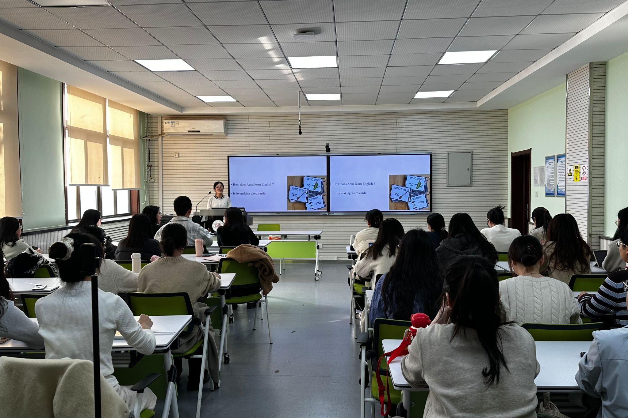 本次工作坊特别设置课例展示与点评环节,旨在为员工提供教学实践与专业发展的交流平台。在课例展示环节,三位来自不同年级的硕士研究生分别进行了课例展示。