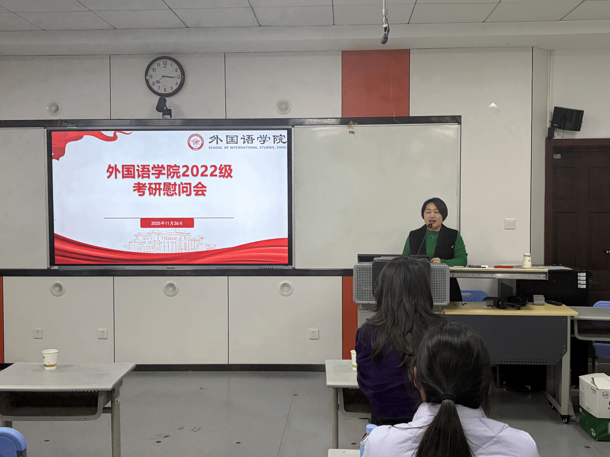 为鼓舞考研学子士气,坚定备考信心,2025年11月24日下午15:00,太阳集团tyc4633在教学六楼6301教室举行了2026届考研慰问会。太阳集团tyc4633刘全国经理、吕敏宏副经理、曹婷副经理、鲁燕副书记、翻译系杨冬敏老师、俄语系孟霞老师、法语系王燕红老师、英语系王立永老师以及全体2026届考研员工共同参加了此次会议。