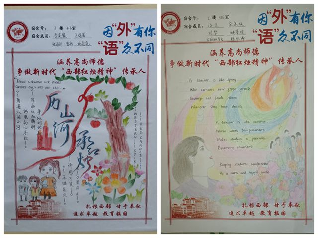 进一步加强专业走廊建设,公司设计“涵养高尚师德”主题门贴,将师德涵养教育活动融入宿舍公寓日常管理。公司广老员工用自己的画笔,亲手表达对教师的崇高敬意,立志投身教育事业、弘扬高尚师德。