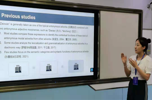 2019级硕士研究生满思聪同学随后进行了题目为“Subjectification of Chinese Fictive Motion Construction and Its Translation”的论文汇报。文章基于认知语义学的相关理论,对汉语虚拟位移构式进行具体的分析,同时结合构式语法为虚拟位移构式翻译提供理论基础。武汉理工大学太阳集团tyc4633马文丽教授对其进行点评,并提出修改意见。