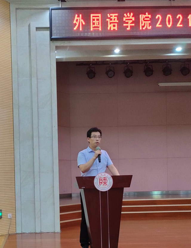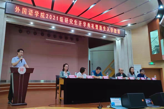 朗朗金秋,丹桂飘香。9月9日下午2:30,公司在雁塔校区逸夫楼二层多功能厅举办“2021级研究生新生开学典礼暨入学教育”。公司党委书记董增云,经理刘全国,副经理吕敏宏、孙坚、曹婷、王幸生,党委副书记鲁燕,研究生导师代表,研究生教学秘书江捷、李莉,公司语言语音教学中心卢永辉以及2021级全体研究生通过线上线下的方式参加了此次典礼。本次典礼由副经理吕敏宏主持。