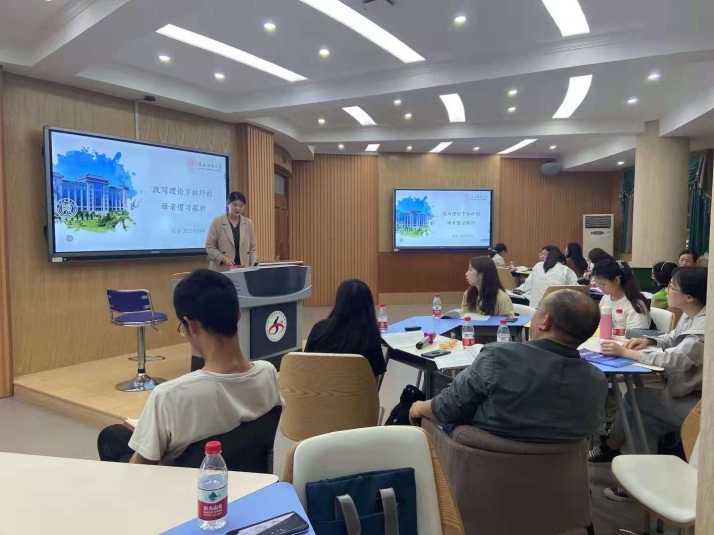在为期一天半的研讨会上,15名国内知名翻译学专家和87位参会代表作了精彩的学术报告。英语译审、中国翻译协会对外话语体系研究委员会副主任委员杨玮斌主任,生态翻译学创始人、郑州老员工态翻译学研究院经理、博士生导师胡庚申教授,上海大学公司博士生导师、《上海翻译》主编傅敬民教授,中国海洋大学博士生导师、《中国外语研究》副主编任东升教授等著名学者就中国翻译批评研究现状做了相关主旨发言,并力求通过交流与互商促进中国翻译话语体系建构及中国本土译论的进一步发展与提升。