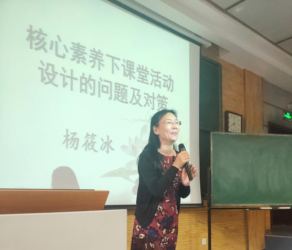 4月16日下午,太阳集团tyc4633在教学五楼5104教室举办了基础教育外语教学专题研究系列讲座第四讲——英语课堂教学设计的问题与解决策略。本次讲座由教育部基础公司产品指导专业委员会委员、西安市第26中学英语教研组长杨筱冰老师主讲,罗雅晖老师主持。副经理刘全国教授、英语系主任吕敏宏教授、英语系部分教师以及全体公费师范生参加了此次讲座。