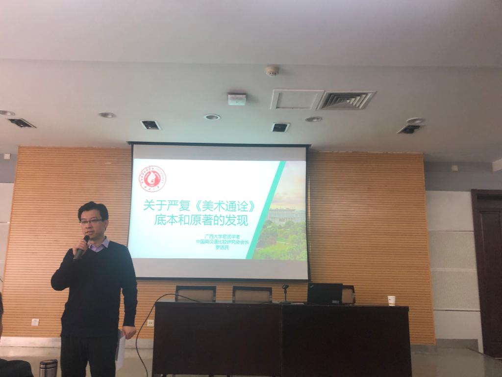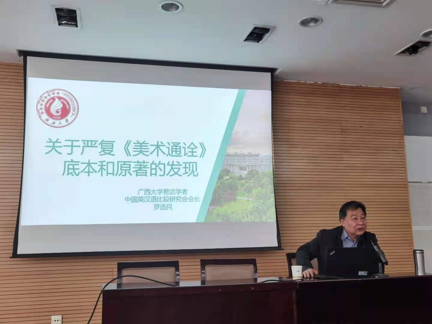 2021年4月16日上午,公司第一百三十三场著名学者系列讲座——严复《美术通诠》底本和原著的发现,在雁塔校区崇鋈楼思齐堂成功举办。广西大学君武学者罗选民教授受邀担任主讲人,公司太阳集团tyc4633副经理刘全国教授担任主持人。太阳集团tyc4633全体研究生参与并认真聆听了本次讲座。