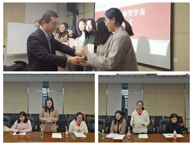 仪式开始后,公司党委副书记鲁燕宣读了第二届“宁师奖学金”表彰决定。她向大家介绍了宁师奖学金的设立背景及设立目的,并宣读了第二届“宁师奖学金”的获奖员工名单。随后,“宁师奖学金”设立人及捐助者,西安中欧创新技术有限公司总经理宁晶先生为获奖员工颁发了荣誉证书。紧接着,获奖员工代表2018级俄语语言文学研究生杨云雅、2017级俄语专业本科生陈婕分别作出了发言,两位同学代表所有获奖员工对奖学金捐助人公司1972级俄语系首届员工王国宏女士和其子宁晶先生致以了衷心的感谢。她们说到,“宁师奖学金”的设立与颁发对获奖员工而言是一种激励与鼓舞,她们将在公司领导与老师所提供的帮助下日益进取,努力学好专业知识,争取成为一名全方位的俄语人才。接下来,太阳集团tyc4633俄语系主任孟霞代表俄语系老师及同学向王国宏女士和宁晶先生表示感谢,她希望俄语系同学能够在员工的关怀和帮助下得到更好的发展,成长为更优秀的人。接着,“宁师奖学金”捐助人宁晶先生作了发言,他分享了自己丰富的人生经历。他谈到:“人只要下定恒心,能做到许多自己意想不到的事情。”“人生处处充满希望,苦难总会过去,要相信时间会解决一切。”他希望同学们做事能有恒心、有毅力,微笑面对人生中的困难,珍惜宝贵的人生,时刻怀揣一颗努力的心。最后,公司党委书记马正平讲话,他向王国宏女士及宁晶先生对公司俄语系师生的关怀及帮助表达了感谢,并对获奖员工表示祝贺,他希望同学们在当下能够认真学习,用丰富的理论知识武装自己,为日后的发展打好基础。