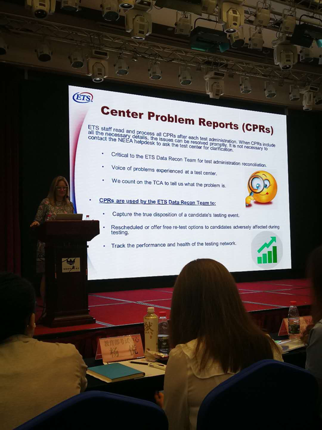 2019年5月29日至30日,教育部考试中心与美国教育考试服务中心(ETS)联合在海口召开2019年全国托福、GRE网考考试工作培训暨全国优秀考点表彰大会。来自全国140多个考点的200余名代表参加了会议,公司考点负责人马兰及考务人员杨红武应邀参会。