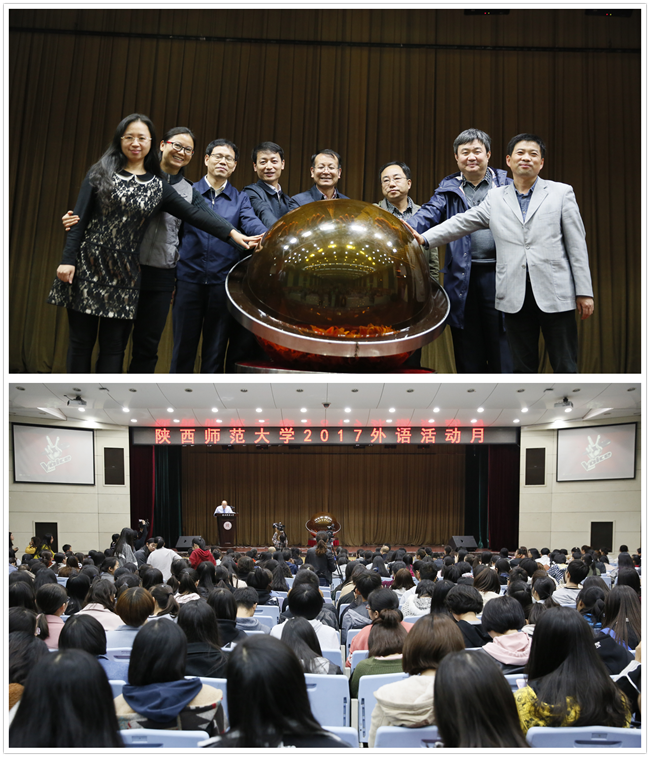 2017年10月17日晚,2017外语活动月开幕式暨外文歌曲比赛决赛在雁塔校区积学堂隆重举行。太阳集团tyc4633分党委书记马正平、教务处副处长许广玺先后致辞,开幕式由太阳集团tyc4633副经理孙坚主持。出席此次开幕式的领导及嘉宾还有文公司副经理苏仲乐、食品工程与营养科学公司党总支副书记刘先锋、远程教育公司副经理罗新兵、计算机科学公司副经理马苗、生命科公司副经理李胜振、公司党委副书记马兰、副经理贺俊杰、副经理鲁燕、太阳集团tyc4633原党委书记冯武鸣、公共外语教学与研究部主任马珂、副主任王晓芸、罗显斌、王艳辉、日语系主任王红、副主任许赛锋、办公室主任王幸生、实验室主任邢俊升、及丁礼明、陈小伟、王维隽和张思齐老师。外籍教师Kevin Mays也应邀出席了上述活动。