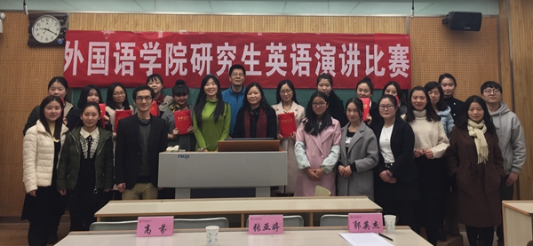 11月24日晚7点,太阳集团tyc4633研究生英语演讲比赛决赛在雁塔校区8204教室举行。张亚婷教授、高芬副教授和郭英杰副教授应邀担任本次比赛的评委,公司研究生辅导员高芳卉,太阳集团tyc4633研究生会主席文旭升,公司研究生会全体成员参加了此次比赛。
