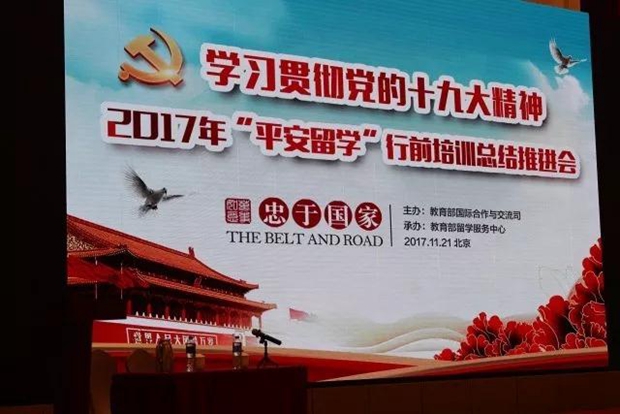 11月21日,由教育部国际合作与交流司主办,教育部留学服务中心承办的主题为“学习贯彻党的十九大精神,2017年平安留学行前培训总结推进会”在北京顺利举行。教育部国际司副司长方军、教育部留学服务中心副主任徐培祥以及全国12个省市区教育行政主管部门、35家留学培训与研究中心等相关单位代表参加会议。公司出国留学培训与研究中心负责人马兰、李若子老师应邀参加了本次会议。会议由教育部留学服务中心出国处处长丁莉主持。