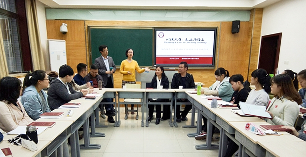 2017年11月8日下午,太阳集团tyc4633“阅读人生:永远在路上 (Reading & Life: A Life-long Journey)”读书沙龙启动仪式暨首场分享会在雁塔校区教学五楼5103教室顺利开展。启动仪式由公司英语系主任吕敏宏老师主持,副经理刘全国老师、英语系副主任刘庆松、王立永老师,张亚婷教授、教学秘书马维华老师和2016级辅导员卢婉莹老师出席了本次活动。