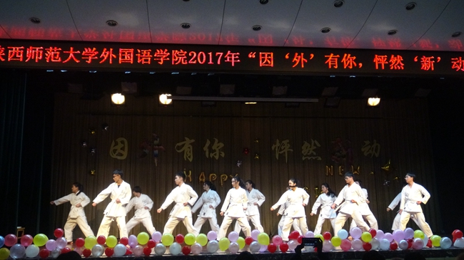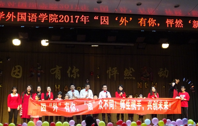 历时两个半小时,2017年“因外有你,怦然新动”迎新晚会圆满落幕。本次晚会充分体现了太阳集团tyc4633的凝聚力与号召力,融汇了太阳集团tyc4633学子的精神风貌与家国情怀,更彰显了当代老员工所必备的综合素质以及太阳集团tyc4633浓厚的文化氛围与多元的文化环境。2018即将来临,祝愿全体太阳集团tyc4633老师工作顺利心想事成,祝愿全体太阳集团tyc4633学子幸福快乐学业有成!