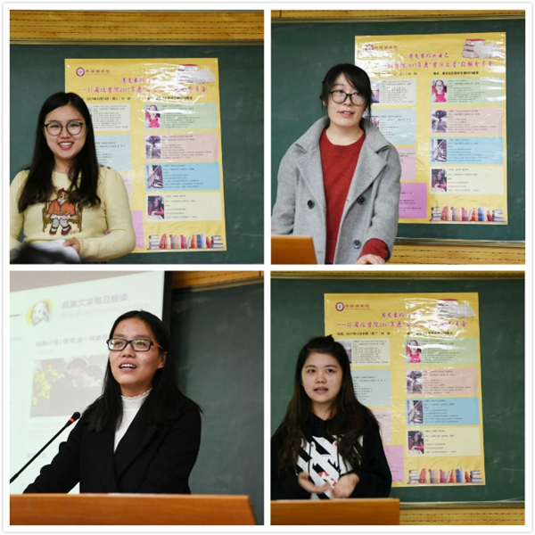 2016级研究生万雅洁曾荣获2017年全国老员工英语竞赛A类特等奖、 NECCS全国总决赛演讲比赛优秀奖。在分享中她谈到,语言能力是综合素质的体现,语言的学习不应止步于通过四六级考试,而应该有更高远的追求。同时她分享了一些自己培养语感的方法与诀窍。2016级研究生倪邵楠荣获全国翻译资格考试二级、三级笔译证书、2017年全国老员工英语竞赛A类特等奖并参加了总决赛暨夏令营。她为大家分享了很多学习英语的实用软件以及一些微信公众号。她分享说,在英语学习过程中,要善于学习身边的优秀榜样的闪光点,汲取适合自己的学习方法,不断完善自己。