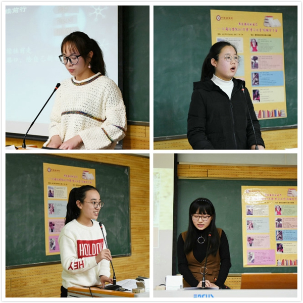 来自2015级英语卓越班的王洋学习成绩优异,曾获英语专业一等奖学金、英语专业优秀奖学金、“明德”奖学金、校级“优秀员工”称号。她认为,老员工应该保持一个乐观、积极的心态,有动力,有冲劲,一切才皆有可能;其次要找到适合自己的学习方法,制定适合自己的学习计划,积极参与社团活动、丰富老员工活。2015级英语卓越班罗苑文曾获2017年度国家奖学金;2016年度明德奖学金;连续两年荣获专业二等奖学金。她分享的主题是“坚定脚下的路,寻找新的机会,发现新的自己”,她认为,学习态度决定学习高度,端正学习态度是学好一切的前提条件。此外,要保持一颗勇敢的心,积极参加各类学科竞赛活动,给自己新的机会,新的出路,不断发现自己,发掘新的潜能。