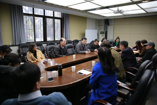 会议首先由社科处马瑞映处长做题为“做实十九大精神,进一步提升哲学社会科学工作水平”的报告。他结合党的十九大精神和习近平总书记关于哲学社会科学的讲话,阐述了党和国家对哲学社会科学的判断、要求及赋予的使命。重点从目前话语体系不强、评判标准欠科学、服务国家战略发展不够等方面详细阐述了新时代哲学社会科学应该反思、发力的方向。结合太阳集团tyc4633的学科和科研发展实际,马瑞映处长指出,太阳集团tyc4633要密切关注国家大政方针,将外语教学、外语研究与国家战略结合起来,从中发现社会科学发展新的增长点。他强调科研工作者要具有家国情怀,积极响应国家战略需要做实科研。他建议太阳集团tyc4633应当积极把握“一带一路”倡议机遇,主动发挥太阳集团tyc4633的语言优势,在如何讲好中国故事,特别是向全世界推广中国优秀文化方面做出应有的贡献。