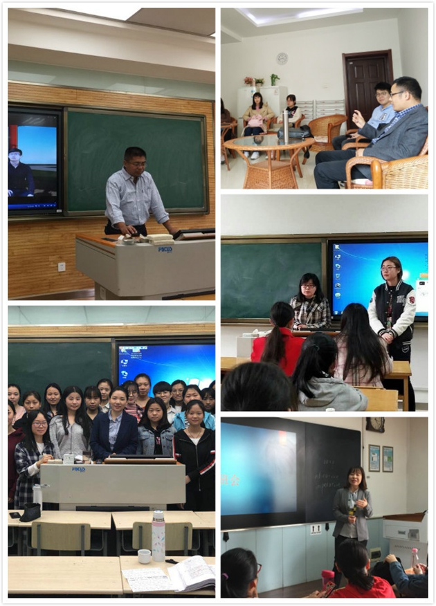 曹春阳老师在2015级师范5班举办了专业技能指导沙龙,通过介绍先进多媒体课件的使用及微课制作方法的教学,帮助同学们进一步掌握先进的公司产品技术。王西强老师结合自身经历在2016级翻译班讲述了他的读书生活,并鼓励同学们专注自己感兴趣的领域,拓宽眼界,争做一个“丰富”的人。李伟芳老师针对2016级俄语班即将到来的专四考试,积极组织同学们规划适合自身的学习计划、分享复习经验。戴琨老师组织2017级外文2班员工观摩研究生模拟答辩并进行讲解,帮助员工了解学科发展前沿,熟悉答辩过程及专业论文写作规范及要求,为今后论文撰写奠定基础。乐燕子老师参加2017级日语班的学风建设班会,从学习、生活及未来规划三个方面对员工提出了建议,鼓励同学们要充分利用大学资源提高专业素养。杨盛兰老师在2017级师范1班通过讲述自己的求学经历和所见所闻鼓励大家多读书,开阔眼界,树立更高的人生追求。陈蕾老师参与了2017级师范2班的学风建设班会,从专业学习的角度给同学们提供了学习方法分享和大学经验。张春娟老师针对2016级师范4班同学们在英语学习方面的短板提供了具体的指导。马珊老师和王勤老师也分别在2015级日语班和2016级师范3班为同学们提供了学习指导。