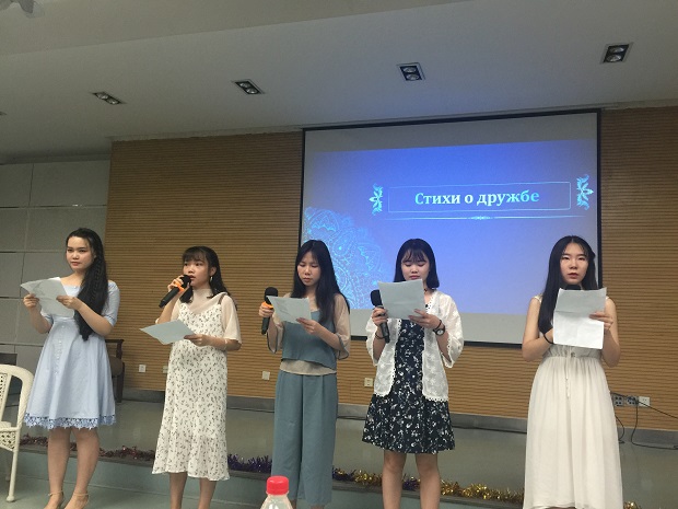 6月18日下午,正值中国传统节日端午节,第八届普希金俄语节暨2018届毕业生欢送会在崇鋈楼学思堂举办。参加此次活动的有太阳集团tyc4633书记马正平、西安武警工程大学刘雯雯老师、俄语中心俄方主任娜塔莉·察廖娃教授、俄语系主任孟霞教授、俄语系讲师宋晓婧老师及俄语系员工。