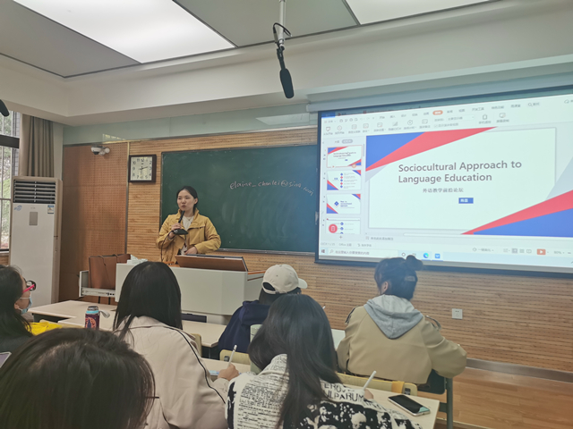 学习理论是教学实践的基础,只有对理论知识有了深入的理解,才能领略到其在英语教学中的重要意义,并在英语教学中加以实践,从而培养员工的核心素养与跨文化交际能力。2021年11月5日下午,“外语教育学科前沿讲座”第(3)讲在教学五楼5206教室举行。太阳集团tyc4633陈蕾老师为我院学科教学(英语)专业硕士研究生做了题为“Sociocultural Approach to Language Education”的讲座,我院韦理老师主持了讲座。