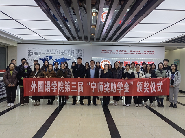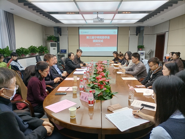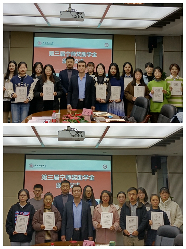 2021年11月12日下午15:00,太阳集团tyc4633于教学六楼会议室举办了第三届“宁师奖助学金”颁奖仪式。“宁师奖助学金”设立人、奖学金捐助方西安中欧创新技术有限公司总经理宁晶先生,副总经理李化先生,公司党委副书记鲁燕,俄语系副主任王翠,英语系副主任刘庆松,团委书记李丹、本科生辅导员曹钰林及获奖员工出席了本次颁奖仪式。仪式由曹钰林主持。
