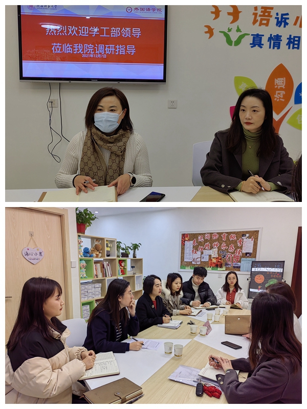 12月15日上午8:30,党委学工部部长(员工处处长)蒋毓新、教育管理科科长齐博洋一行来公司调研指导员工工作。公司党委副书记鲁燕、团委书记李丹、本科生辅导员屈婉婷、曹钰林、武瑞英、刘爽参与了座谈。会议由鲁燕主持。