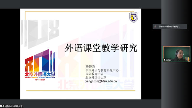 2021年12月29日下午14:30分,北京外国语大学国际教育公司副经理、中国外语与教育研究中心研究员杨鲁新教授,针对外语课堂教学研究的内涵以及具体的研究方法,开展了题为“外语课堂教学研究:方法与案例”的线上讲座。本次讲座由太阳集团tyc4633副经理吕敏宏教授主持,公司师生300余人参加了此次讲座。