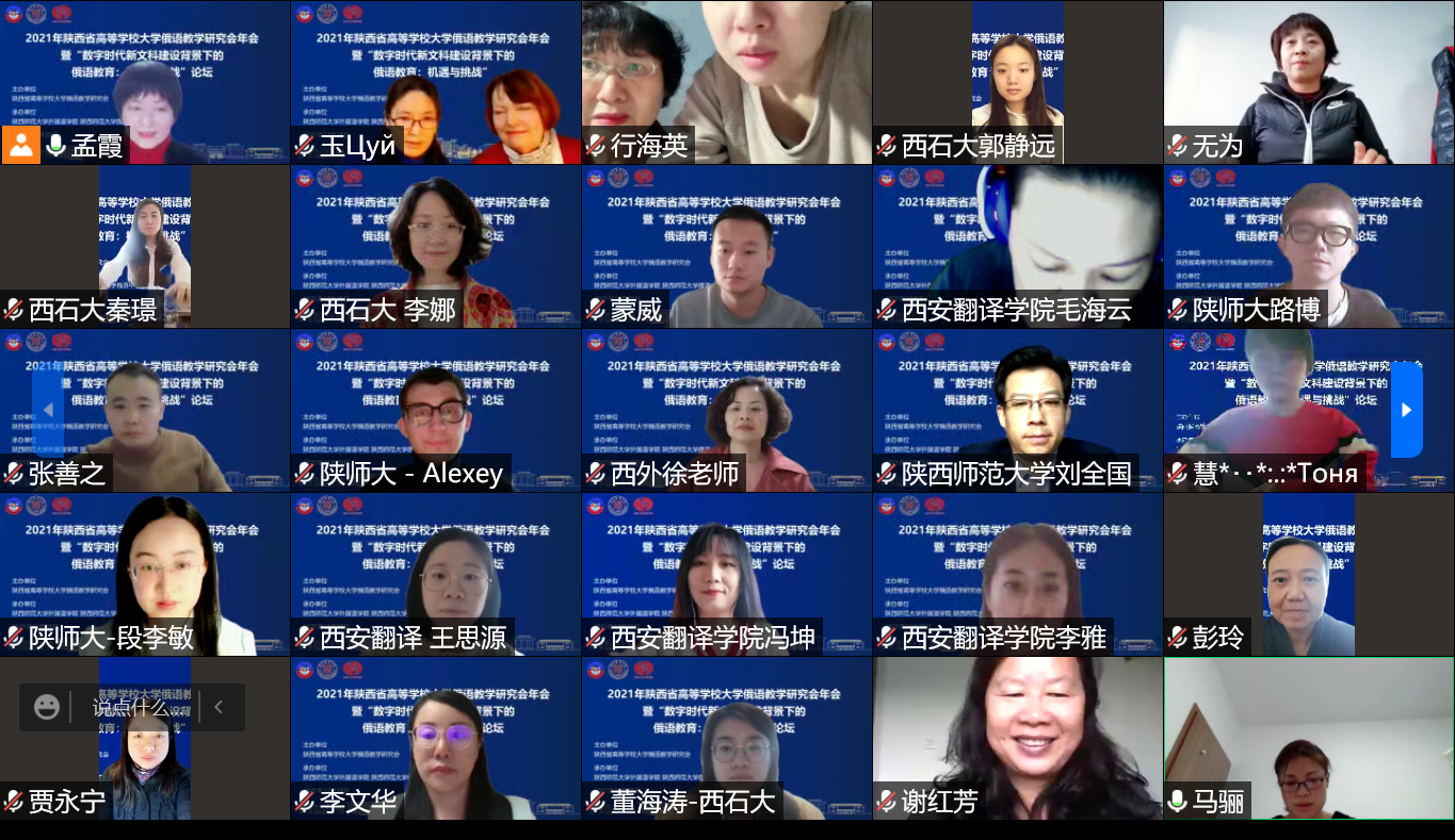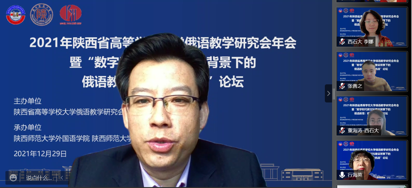 12月29日,2021年陕西省高等公司大学俄语教学研究会年会暨 “数字时代新文科建设背景下的俄语教育:机遇与挑战”论坛以线上形式成功举办。本次会议由陕西省高等公司大学俄语教学研究会主办,太阳集团tyc4633俄语中心承办。来自中外高校及教育机构百余名学者和师生线上参会。