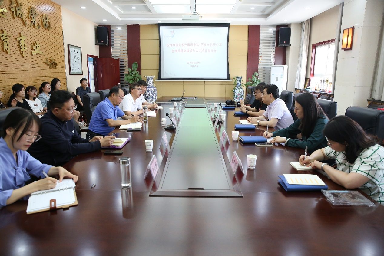 5月20日下午,刘全国经理一行赴西安市航天中学开展教研共同体建设暨拓岗促就业专项座谈活动。公司刘全国经理、曹婷、王幸生副经理、朱冬怡老师及西安市航天中学徐世峰董事长、卢京华书记、付晓静、郭锐副董事长和全体英语老师共同参加了座谈活动,活动由西安市航天中学徐世峰董事长主持。