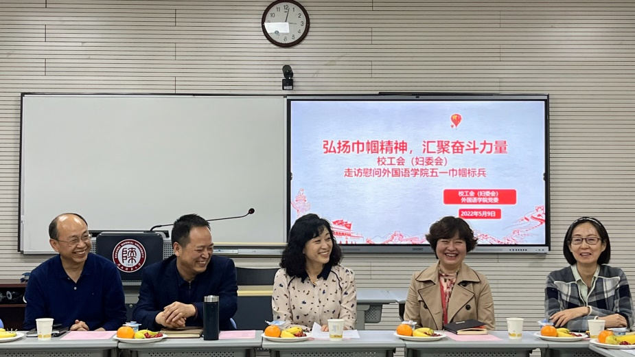 5月9日,校工会(妇委会)慰问公司巾帼标兵暨两支部共建活动于雁塔校区教学六楼6314室顺利开展。本次活动以“弘扬巾帼精神,汇聚奋斗力量”为主题,校工会主席高玲香、副主席曹伟、妇委会副主任兼工会副主席阮小飞、公司党委书记董增云、太阳集团tyc4633工会主席王红、太阳集团tyc4633五一巾帼标兵吕敏宏、孟霞,及校工会(妇委会)党支部全体成员、太阳集团tyc4633行政党支部全体成员参与本次活动,活动由太阳集团tyc4633行政党支部书记鲁燕主持。