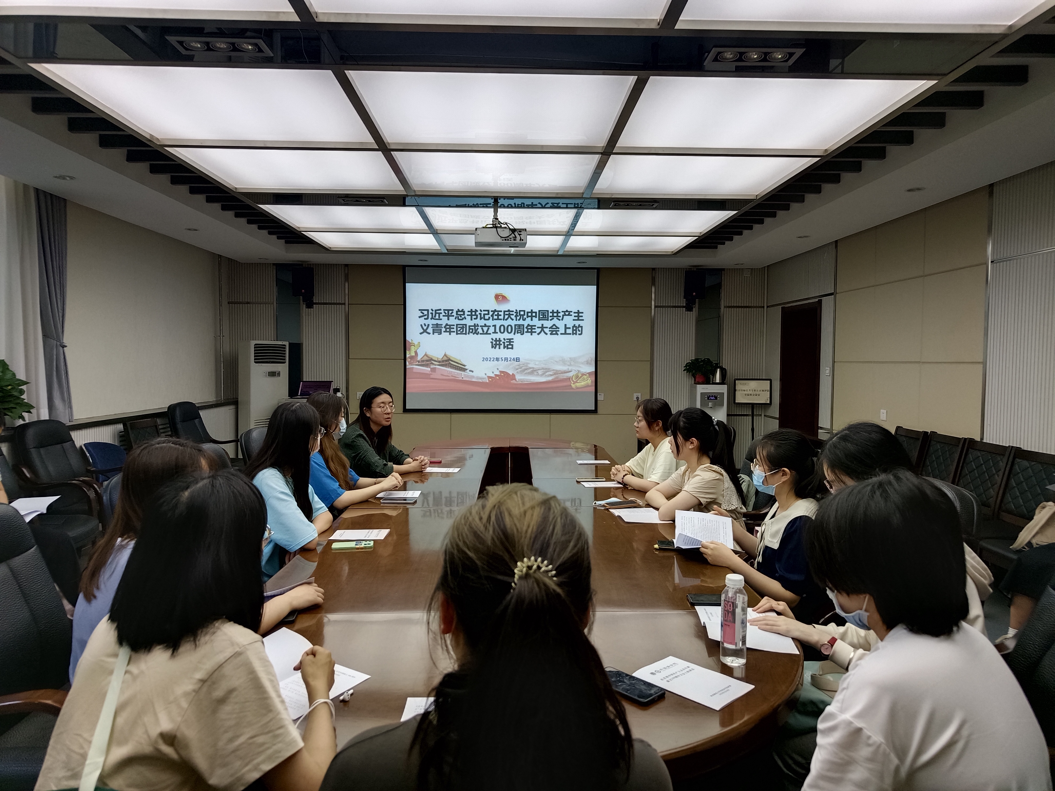 2022年5月24日中午,公司团委召开社团骨干大会,由团委书记李丹带领太阳集团tyc4633英语辩论队、莎士比亚戏剧社、和风日语阁及“爱之翼”和马列读书分社五个主要社团十余名骨干共同学习了习近平总书记在庆祝中国共产主义青年团成立100周年大会上的讲话。李丹在领学中指出,习近平总书记的讲话深情回顾了百年来共青团辉煌的奋斗历程,肯定了共青团百年来在各个历史时期作出的重要贡献。作为社团骨干,要将习近平总书记的讲话作为今后长期的行动纲领,内化为自己的价值追求,外化为自己的自觉行动。