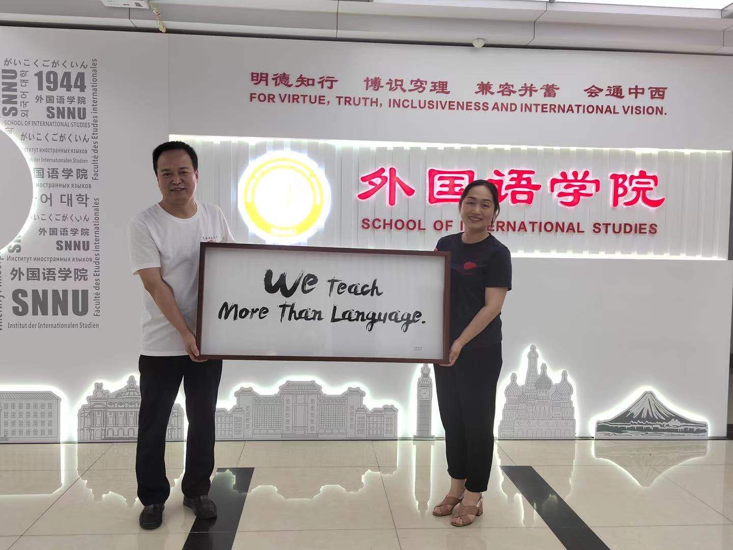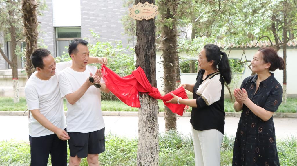 当日下午,外语系6名1992届员工代表返回母院,在公司党委副书记卢胜利、公司党委书记董增云、原1992届辅导员韩彬梨、党委副书记鲁燕的见证下,员工们在员工林举行了简短而热烈的员工林油松认领揭牌仪式。董增云在发言中对院友们的到来表示欢迎,同时希望大家常回家看看,在今后的发展中越来越好。随后,6位员工代表全体外语系1992 届员工为公司送上了一幅写有“We Teach More Than Language(我们不只教授语言)”字样的牌匾,表达外语公司在教授员工语言的同时,也教授员工语言之外/之上更加广袤深刻内容的寓意。随后,董增云代表公司向1992届员工送上了纪念印章,并表示,公司将以邮寄的方式将公司和公司为全体1992届员工准备的纪念品寄送给大家。